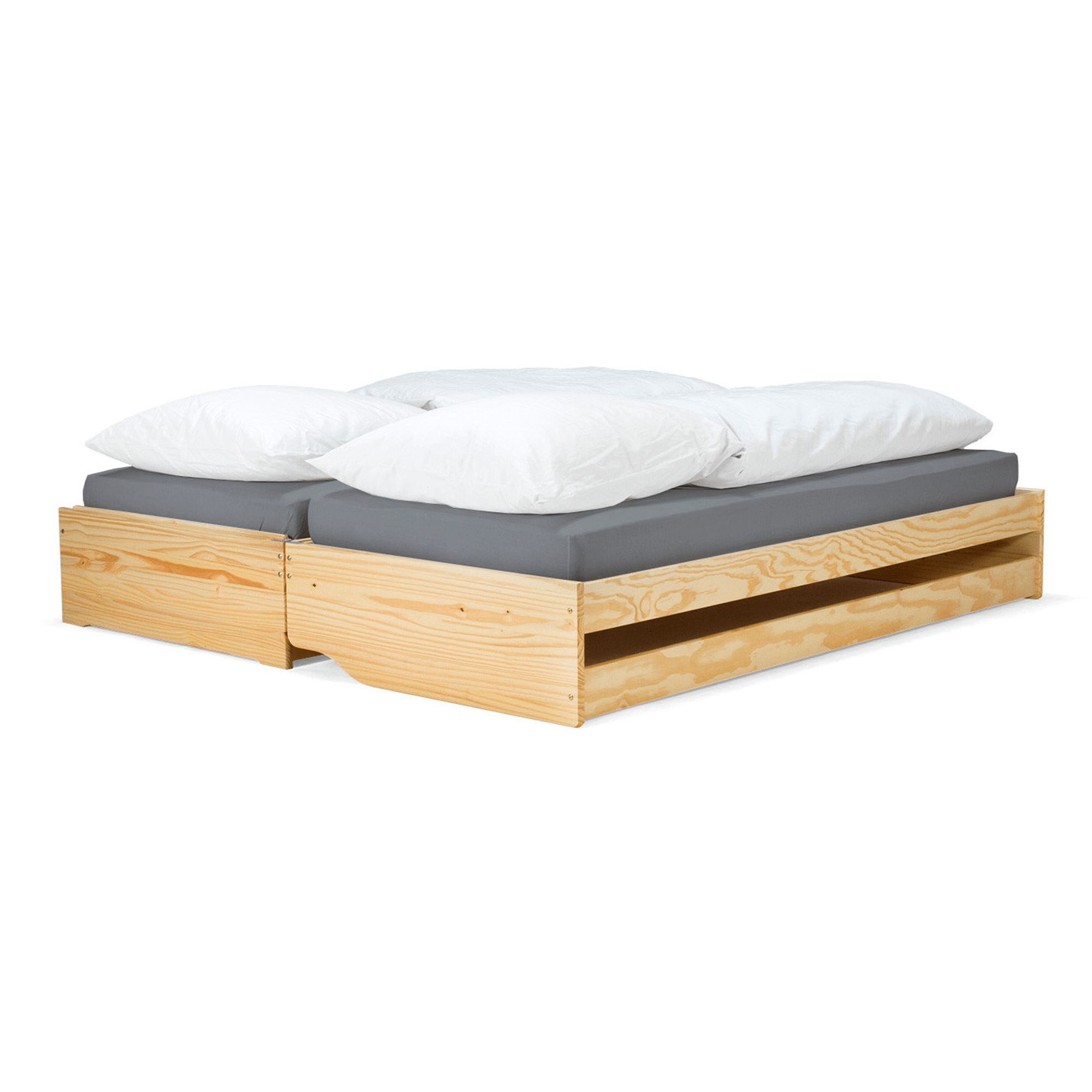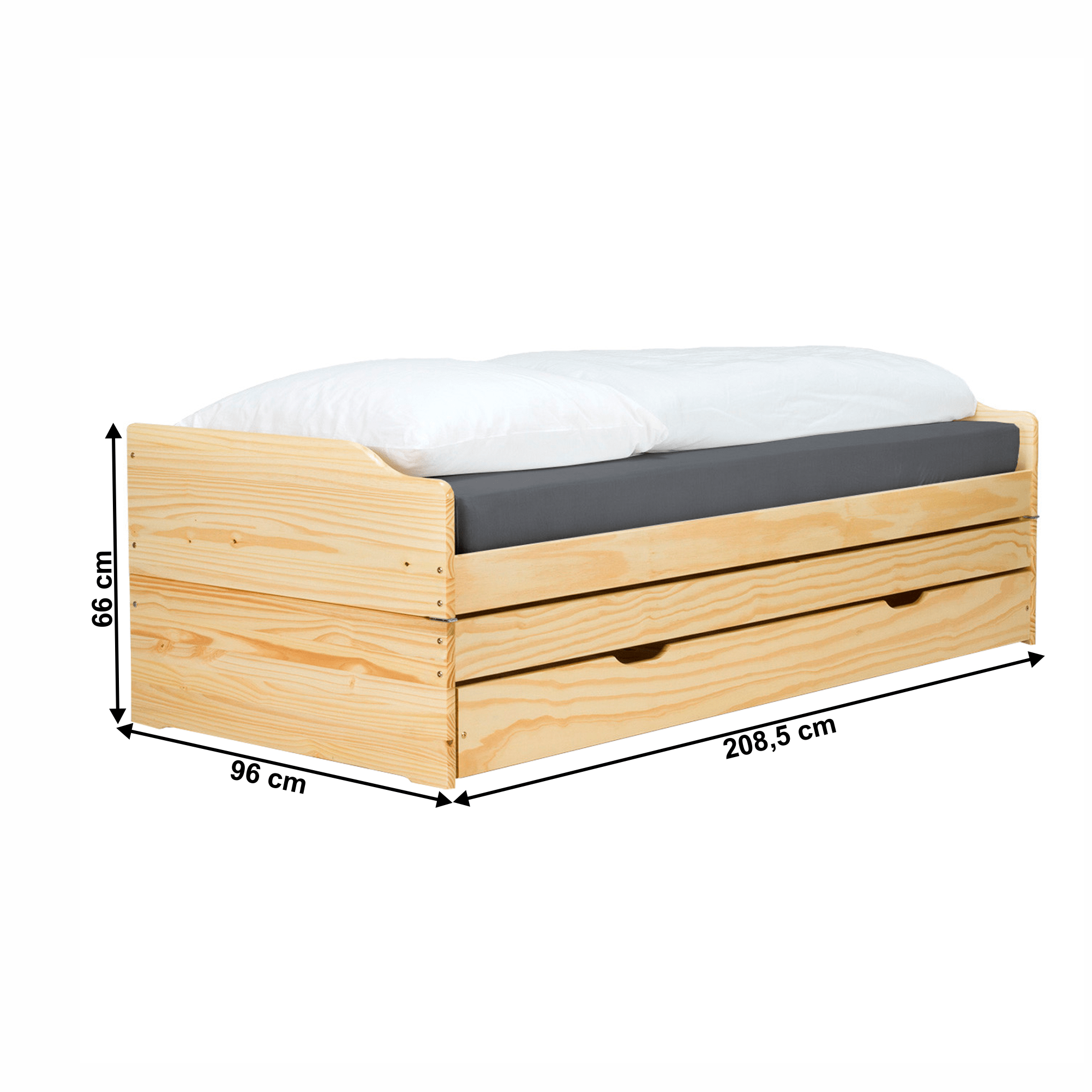 Ágy kihúzható pótágyakkal, természetes, tömörfa, 90×200, FLOPY
