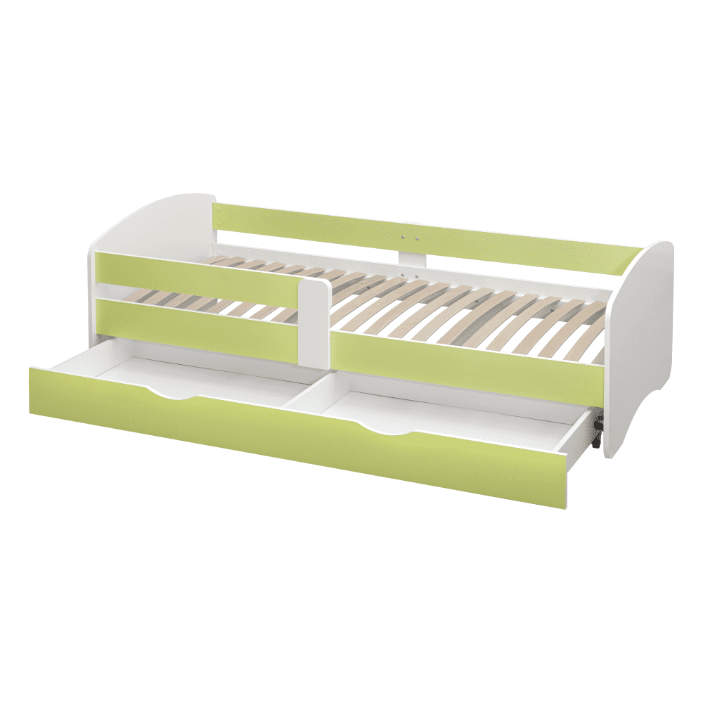 Ágy ráccsal és tárolóhellyel 90×200, fehér/zöld, COCOLINO