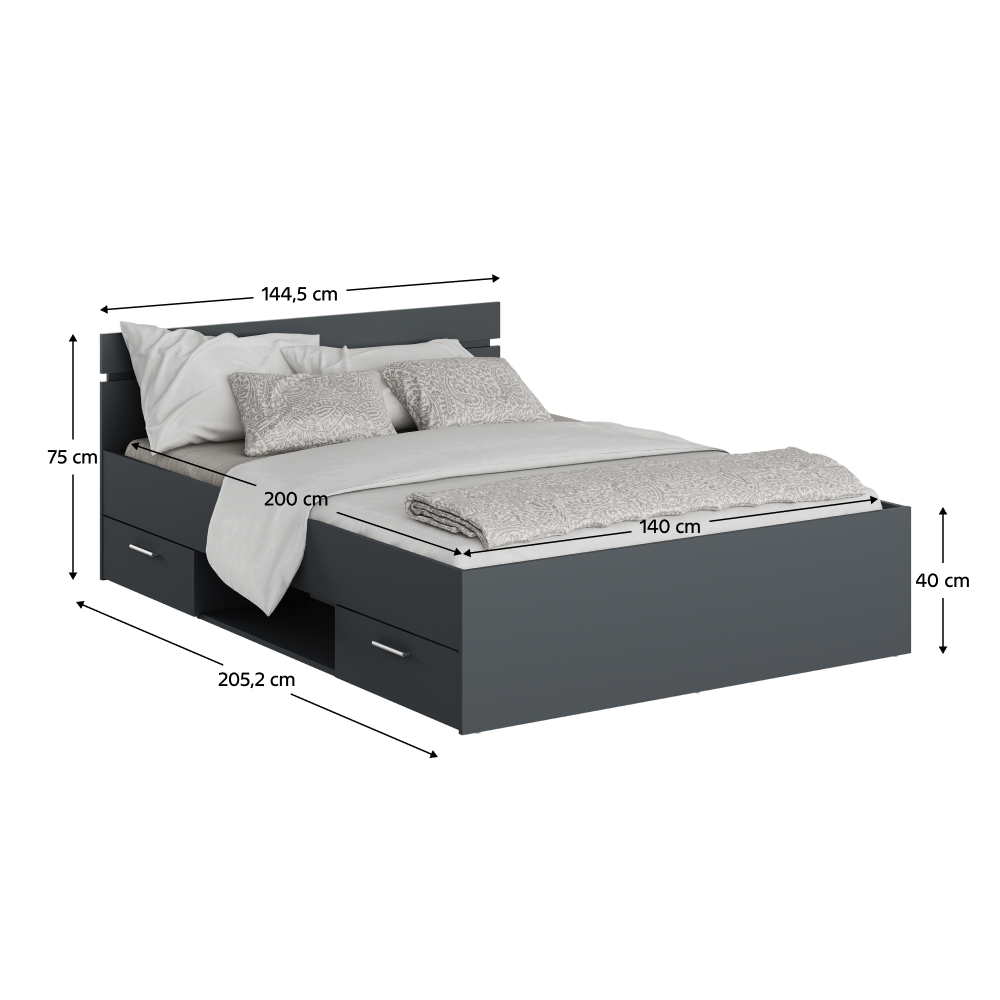 Ágykeret, 140×200, grafit, MICHIGAN NEW
