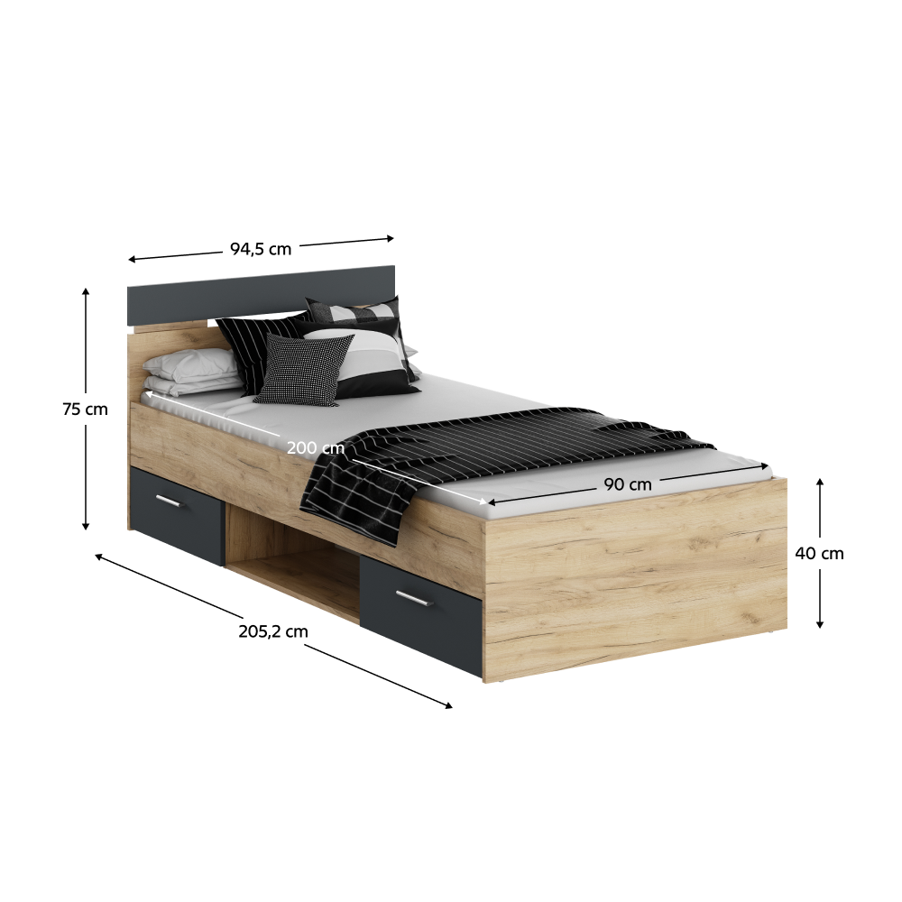 Ágykeret, 90×200, artisan tölgy/grafit, MICHIGAN NEW