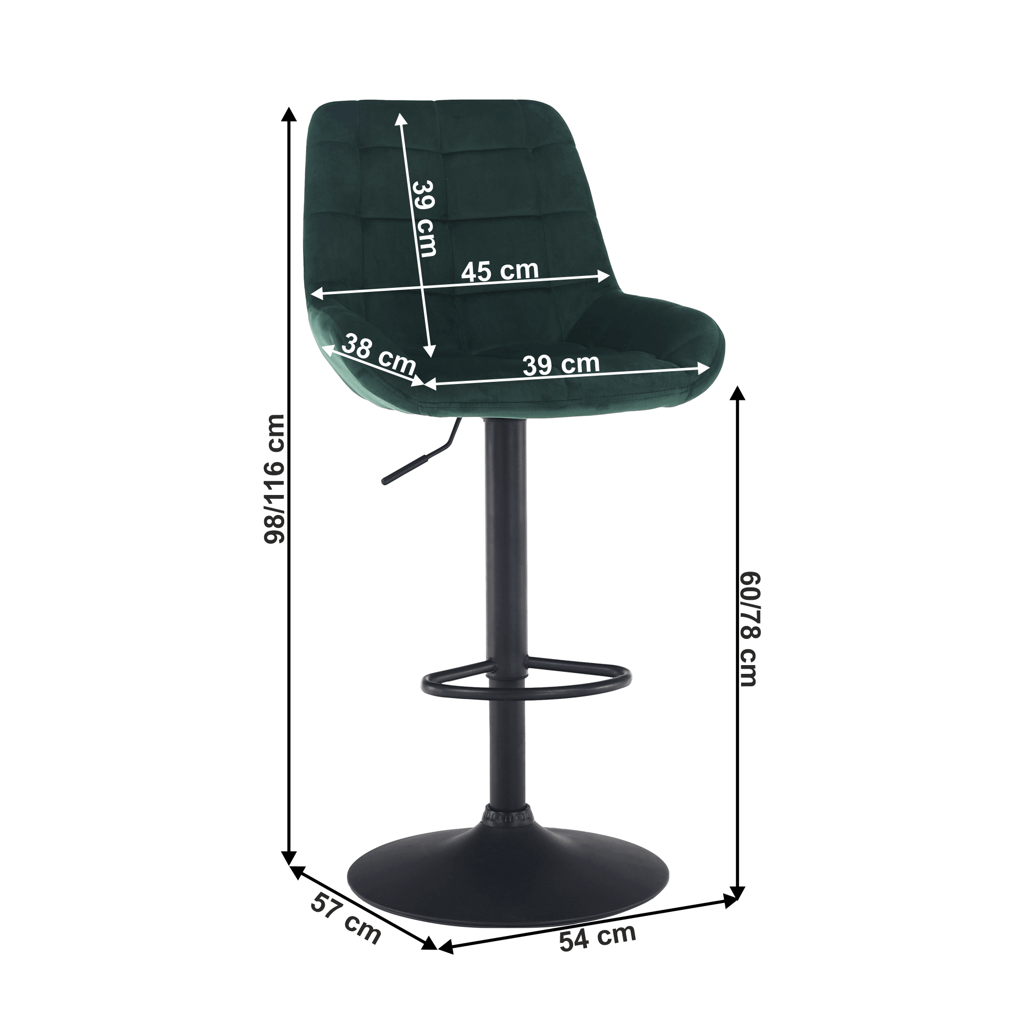 Bárszék, sötétzöld Velvet anyag, CHIRO NEW