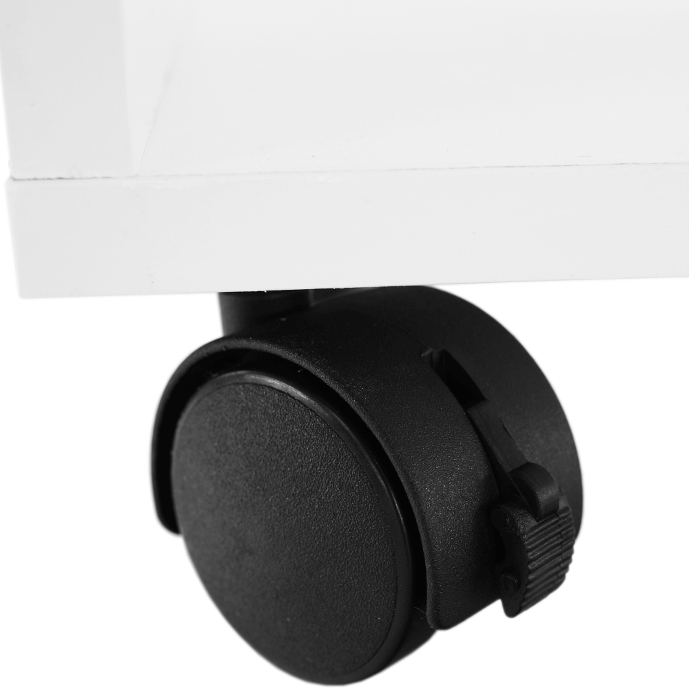 „Kisasztal kerekekkel, fehér színben.