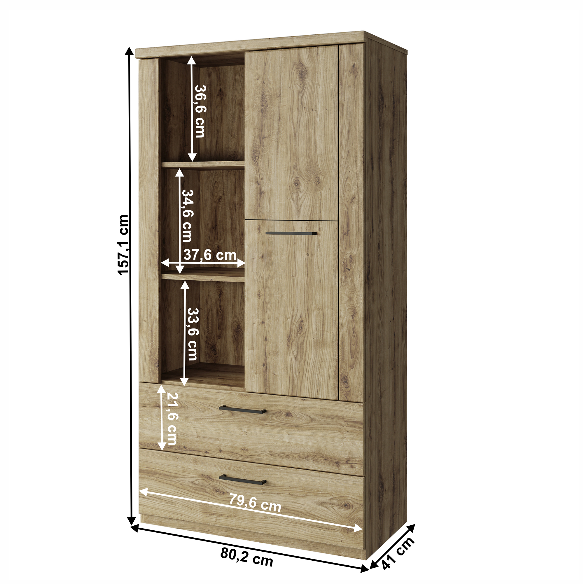 Nyitott polcos szekrény 1D2S, navarra tölgy, DORSI