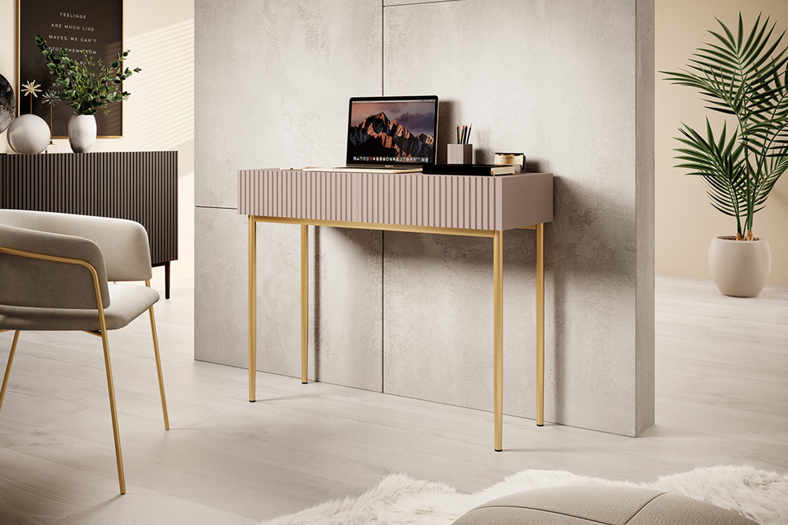 Nicole Modern fésülködőasztal – Antik rózsaszín MDF / aranyozott lábak, szélesség: 100, magasság: 82, mélység: 41, láb magassága: 67.