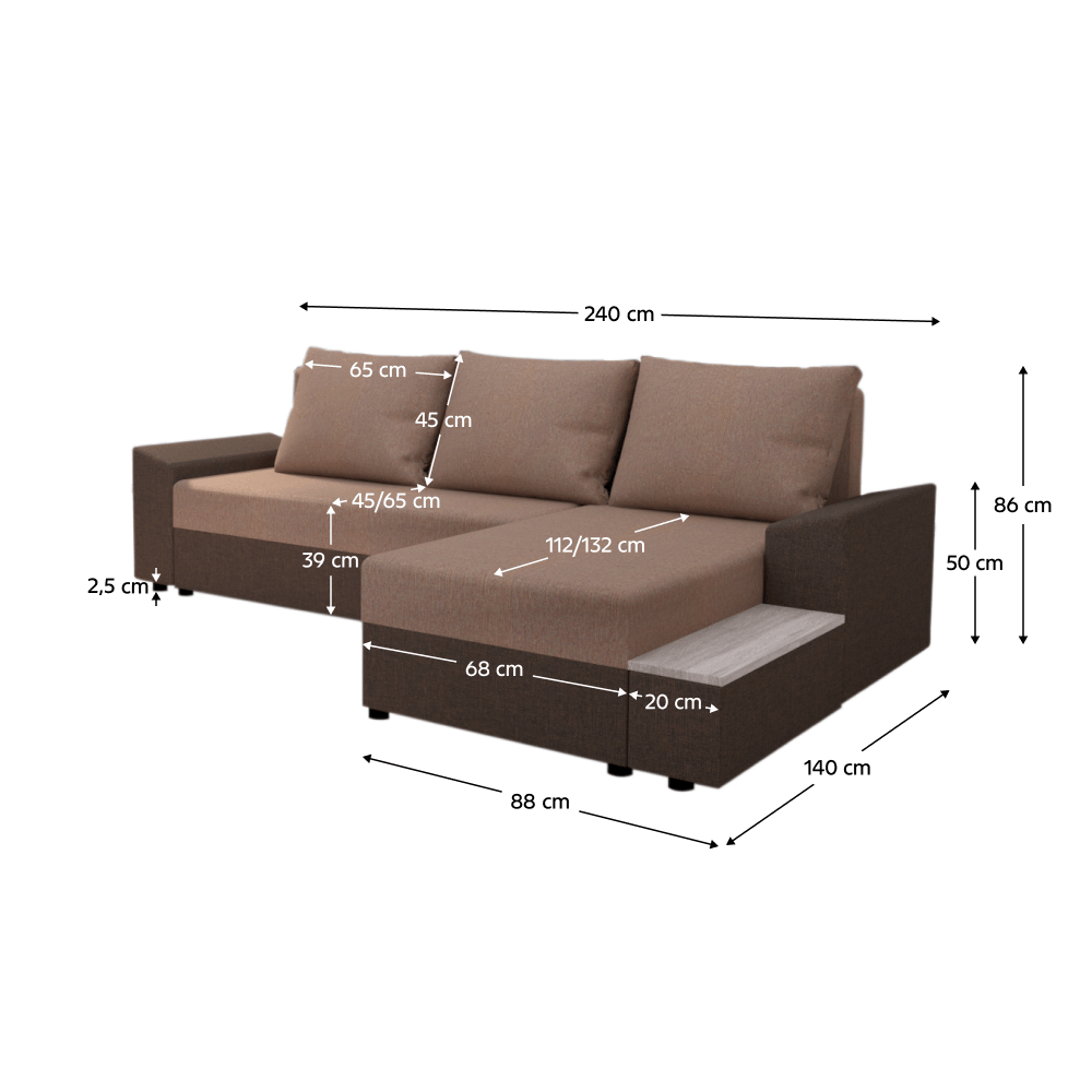 Univerzális ülőgarnitúra, barna/világosbarna, FERGUS ROH