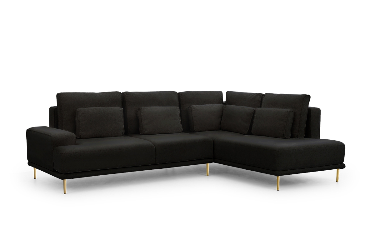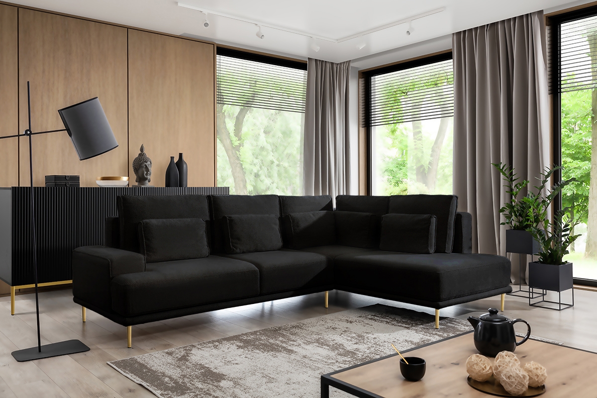 Sarokkanapé Nicole L right – fekete Salvador 19 Agmamito/aranyozott lábakkal