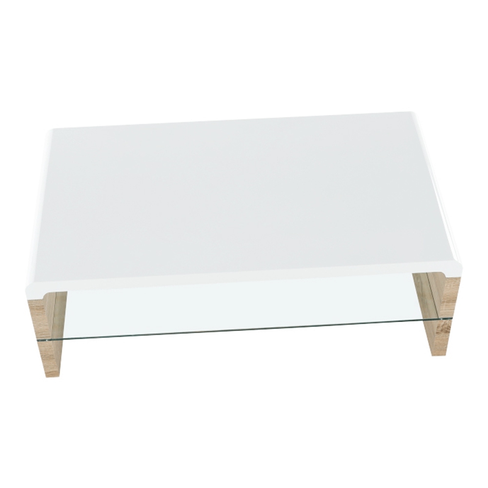 Dohányzóasztal, sonoma tölgyfa/fehér extra magasfényű HG, KONTEX 2 NEW