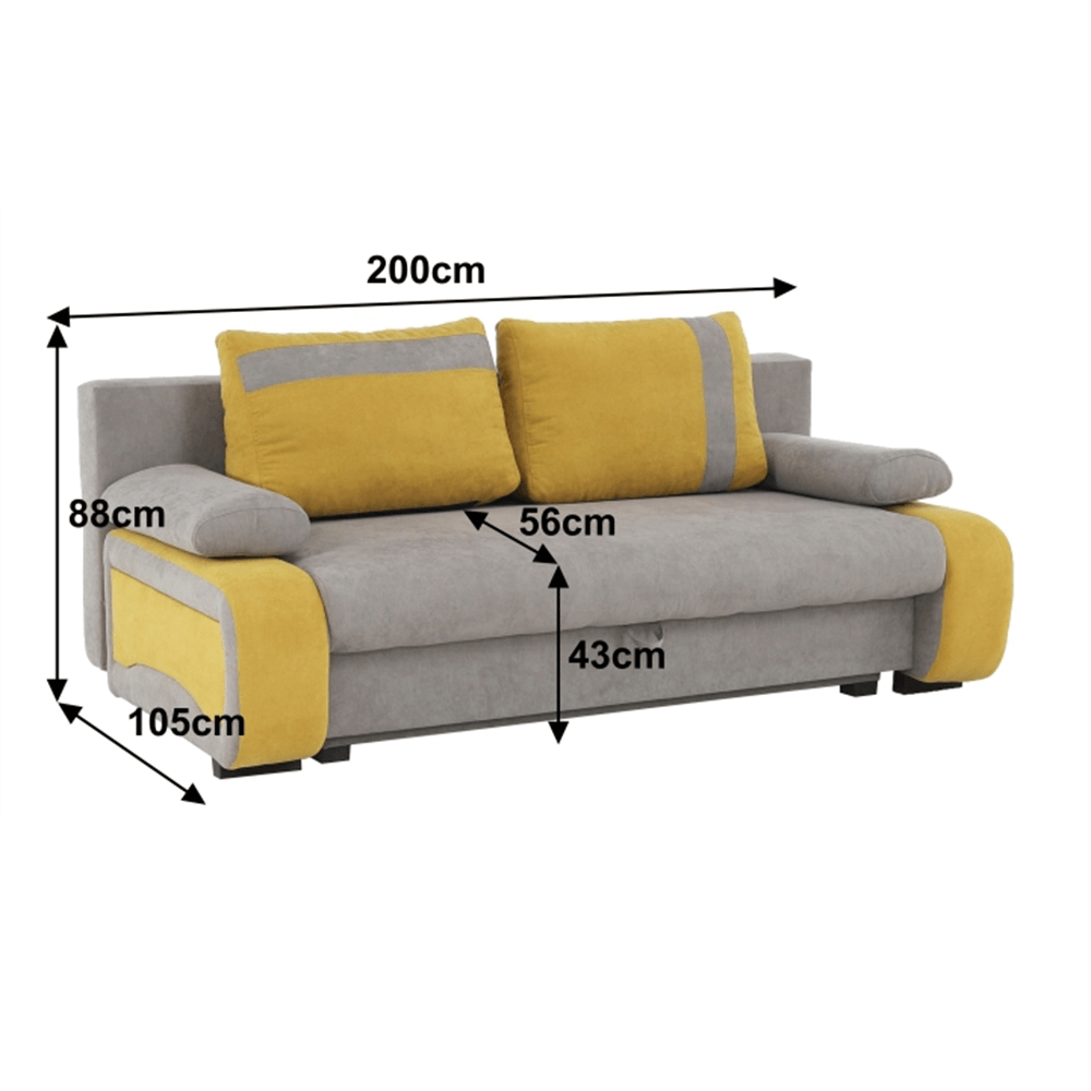 Kinyitható kanapé, szürke-barna/sárga, BOLIVIA