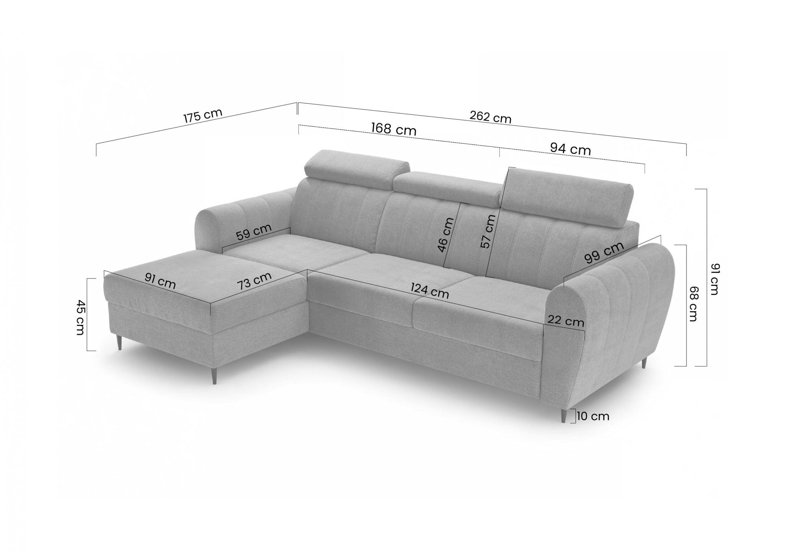 Celias Mini bal oldali kihúzható sarokkanapé – bársonyzöld Kronos 19, szélesség: 265, magasság: 91, mélység: 175, hálórész: , lábmagasság: 10, ülésmagasság: 45, összeszerelés: , hálórész – mélység: 128, hálószoba – a modern bútorok szélessége21. lehajt aludni. Ezenkívül a Leonardo sarokkanapé puha ülőfelülettel és állítható ülésmélységgel rendelkezik.