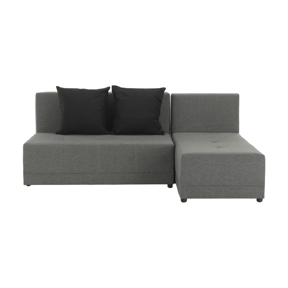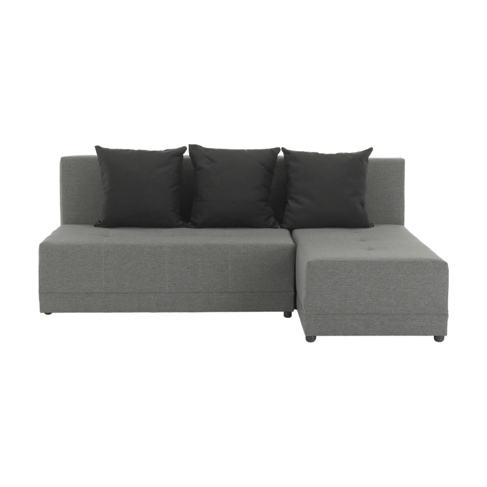 Sarokülőgarnitúra, J allású, ágyfunkcióval, szövet szürke/ párnák fekete, MEXX