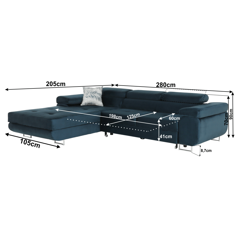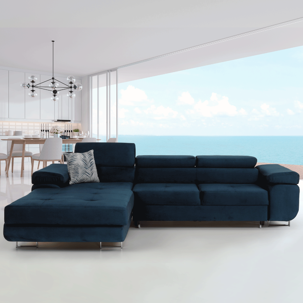 Sarokülőgarnitúra, kék, balos kivitel, AMARETA