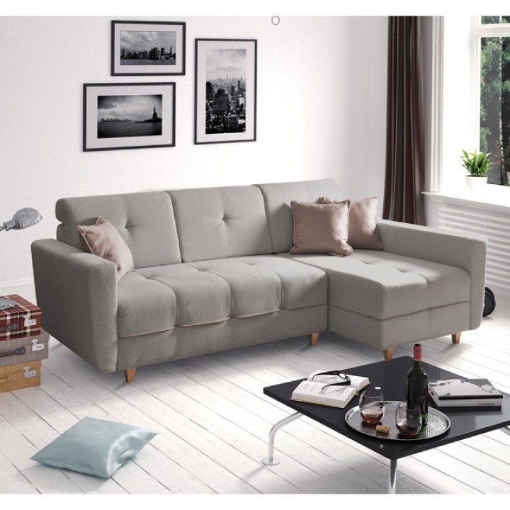 Sarokülőgarnitúra, kárpitozott, rakodótérrel, HAKAN