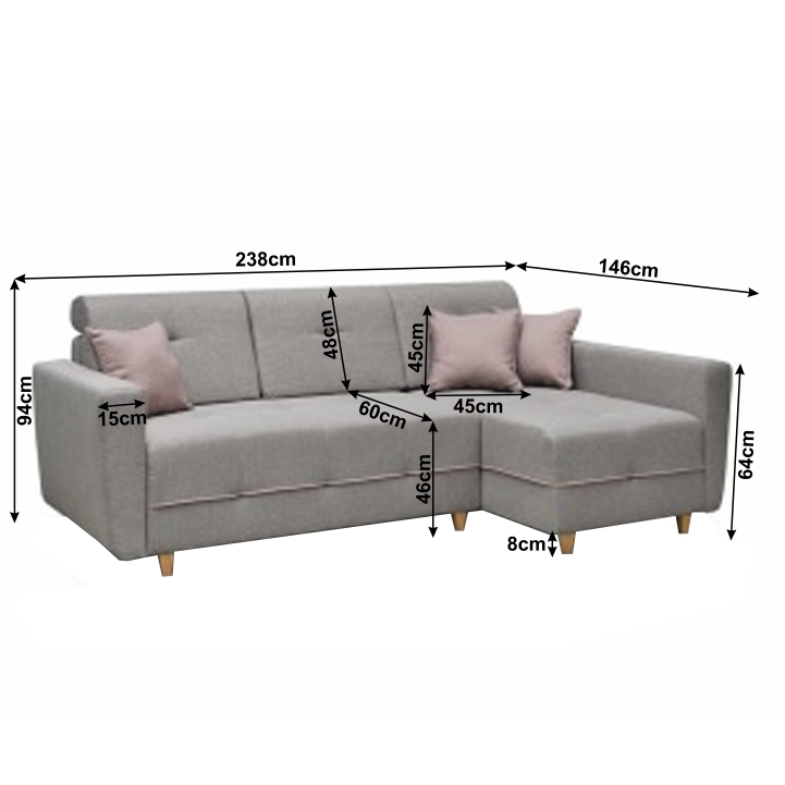 Ülőgarnitúra, szürke/púderrózsaszín, jobbos, HAKAN