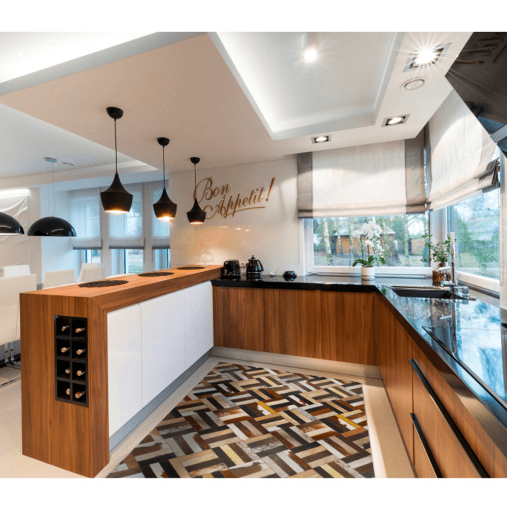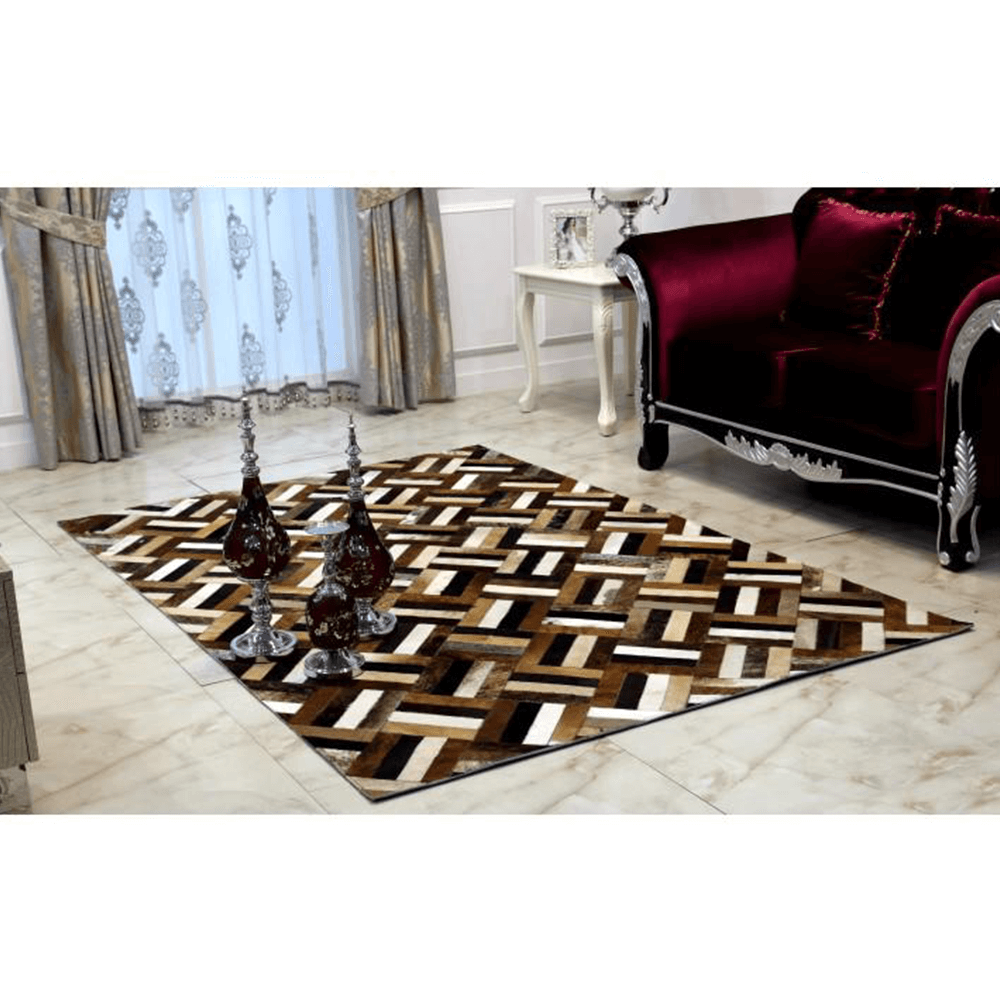 Luxus bőrszőnyeg TIP 2, marhabőrből készült patchwork technikával. Nemezzel erősítve.