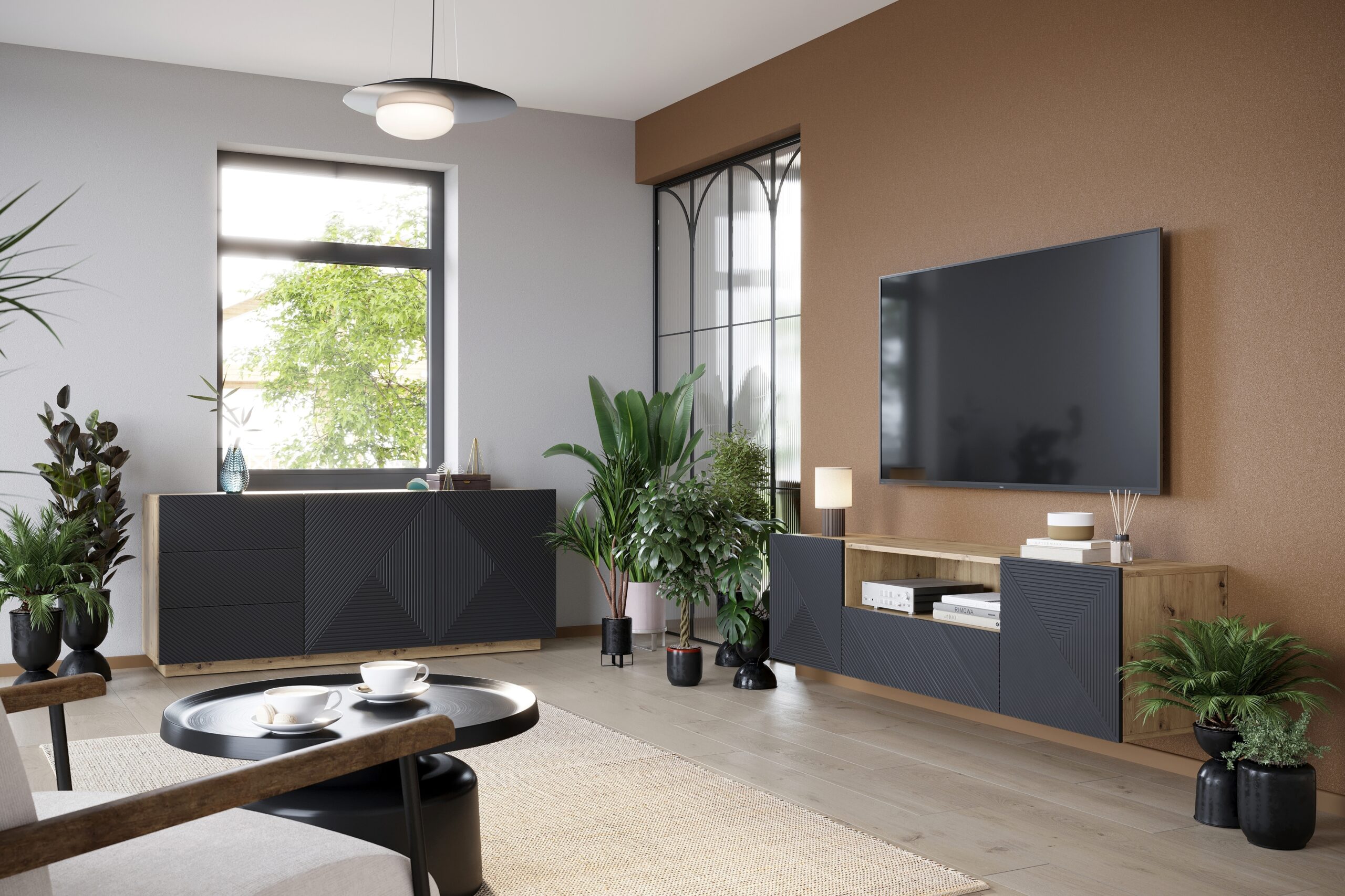 Asha komód 167 cm – kézműves / riviér kő matt, szélesség: 167, Magasság: 71, mélység: 43, Összeszerelés: , Lábmagasság: , Asztallap mélysége: .