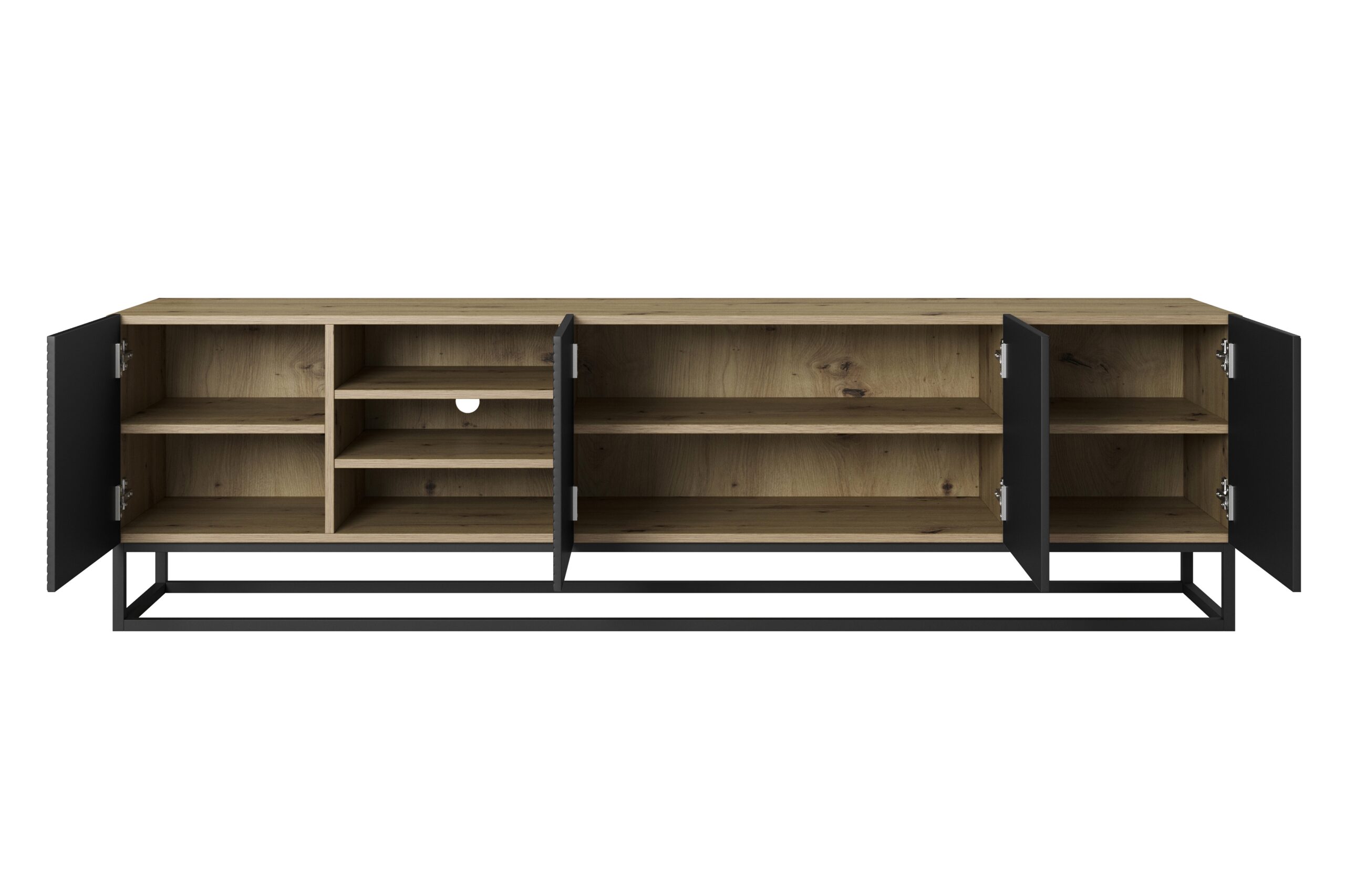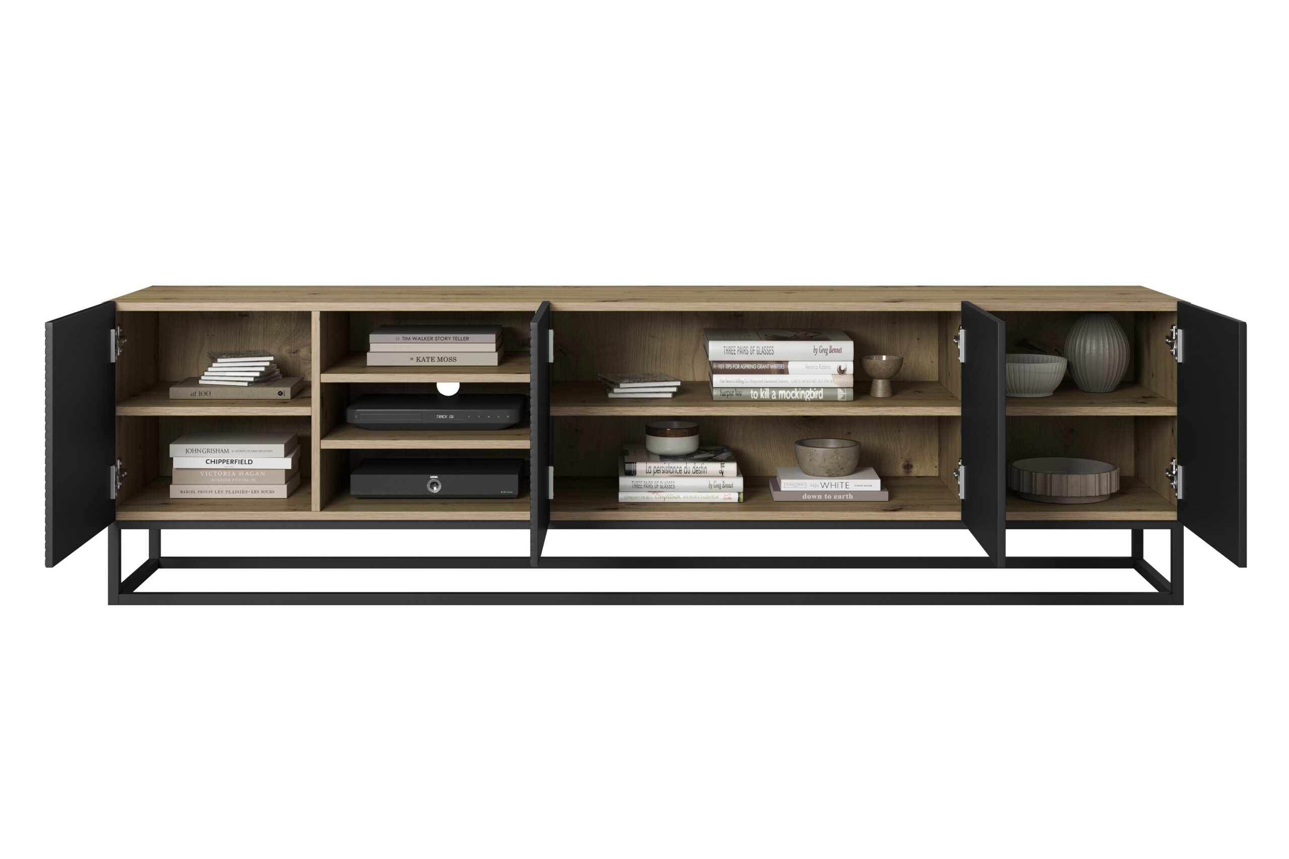 Asha TV állvány 200 cm, fülke fém talpon – kézműves / matt fekete, szélesség: 200, Magasság: 56, mélység: 40, Lábmagasság: 16.