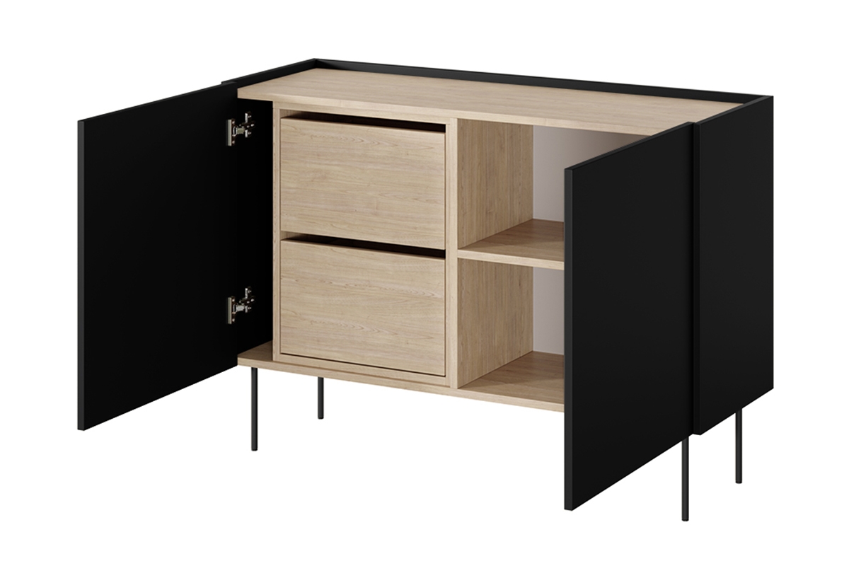 Kétajtós és két fiókos komód Desin 120 2U2S – matt fekete / Nagano tölgy