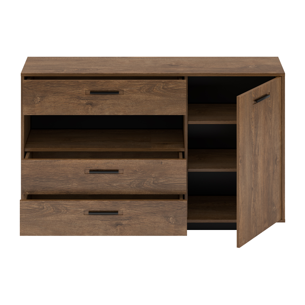 Komód, bolzano tölgy/fekete, DELIS E