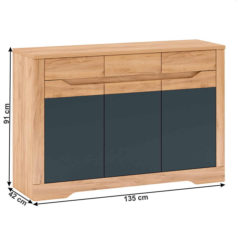 Komód E, tölgy craft arany/grafit szürke, FIDEL