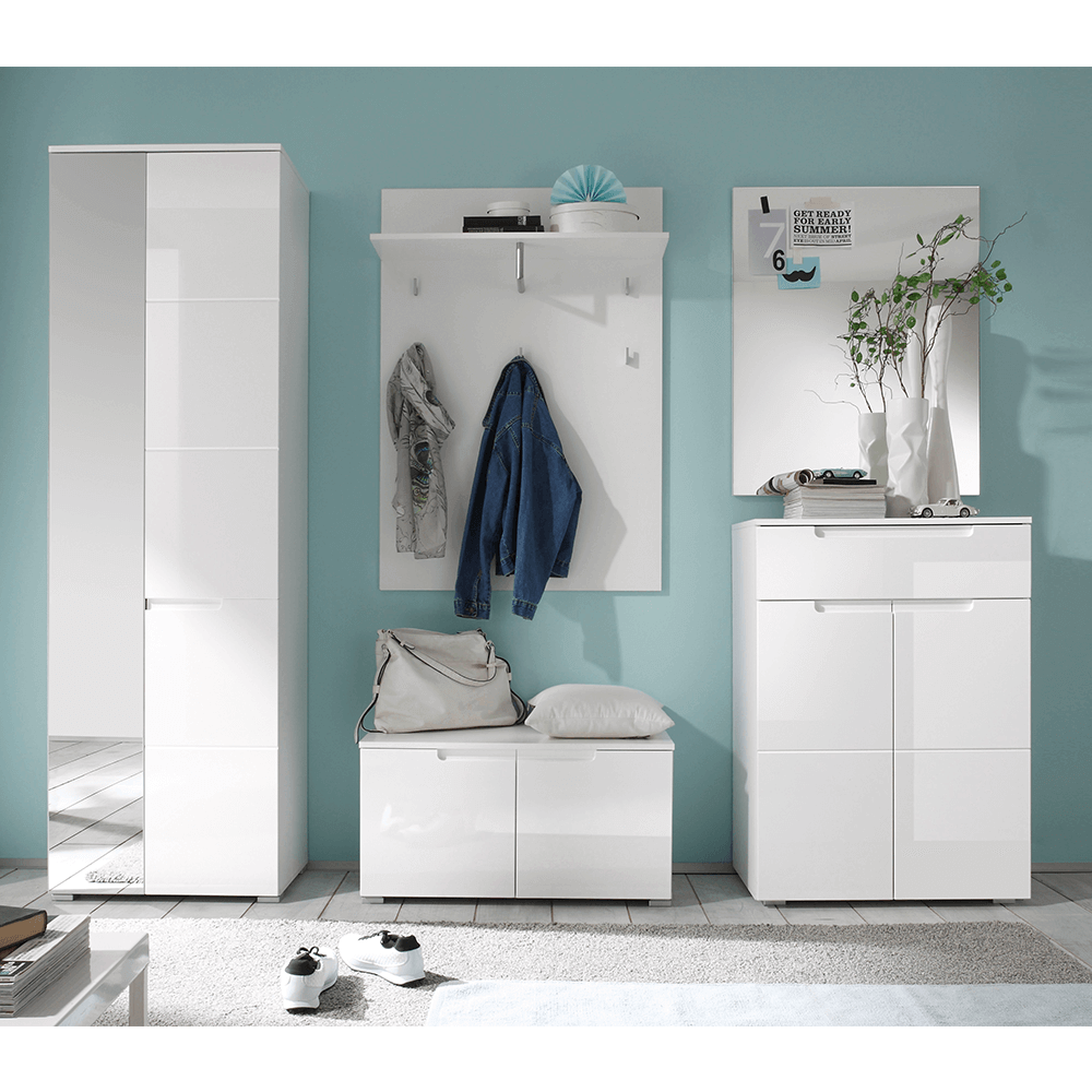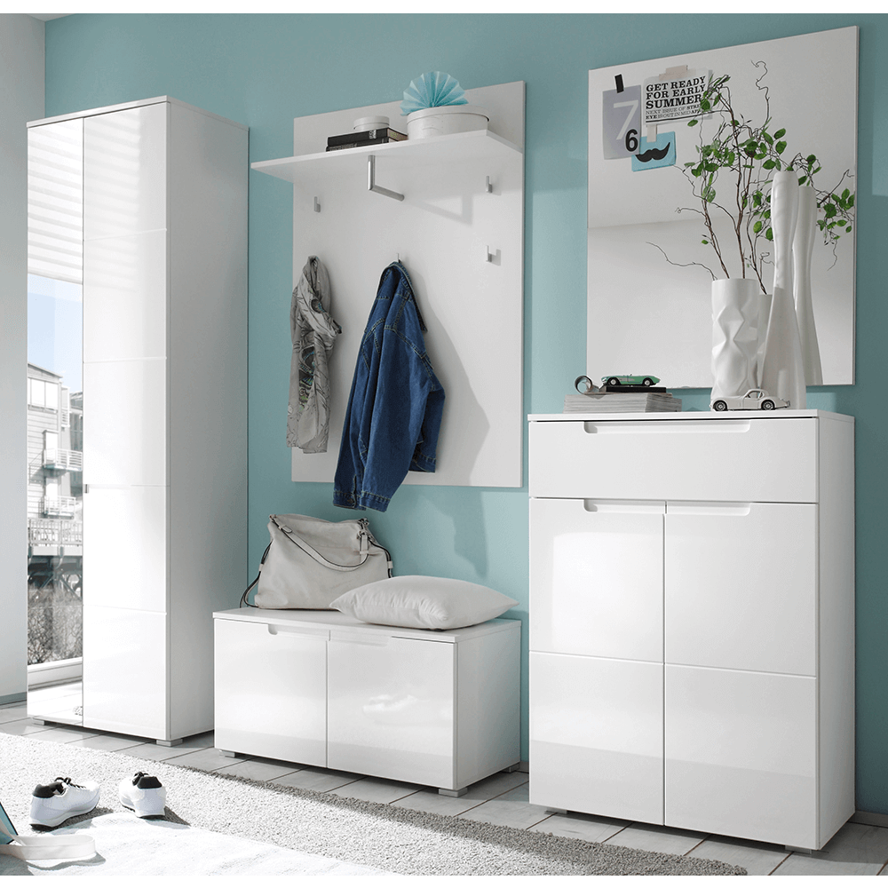 komód, fehér extra magasfényű, SPACE