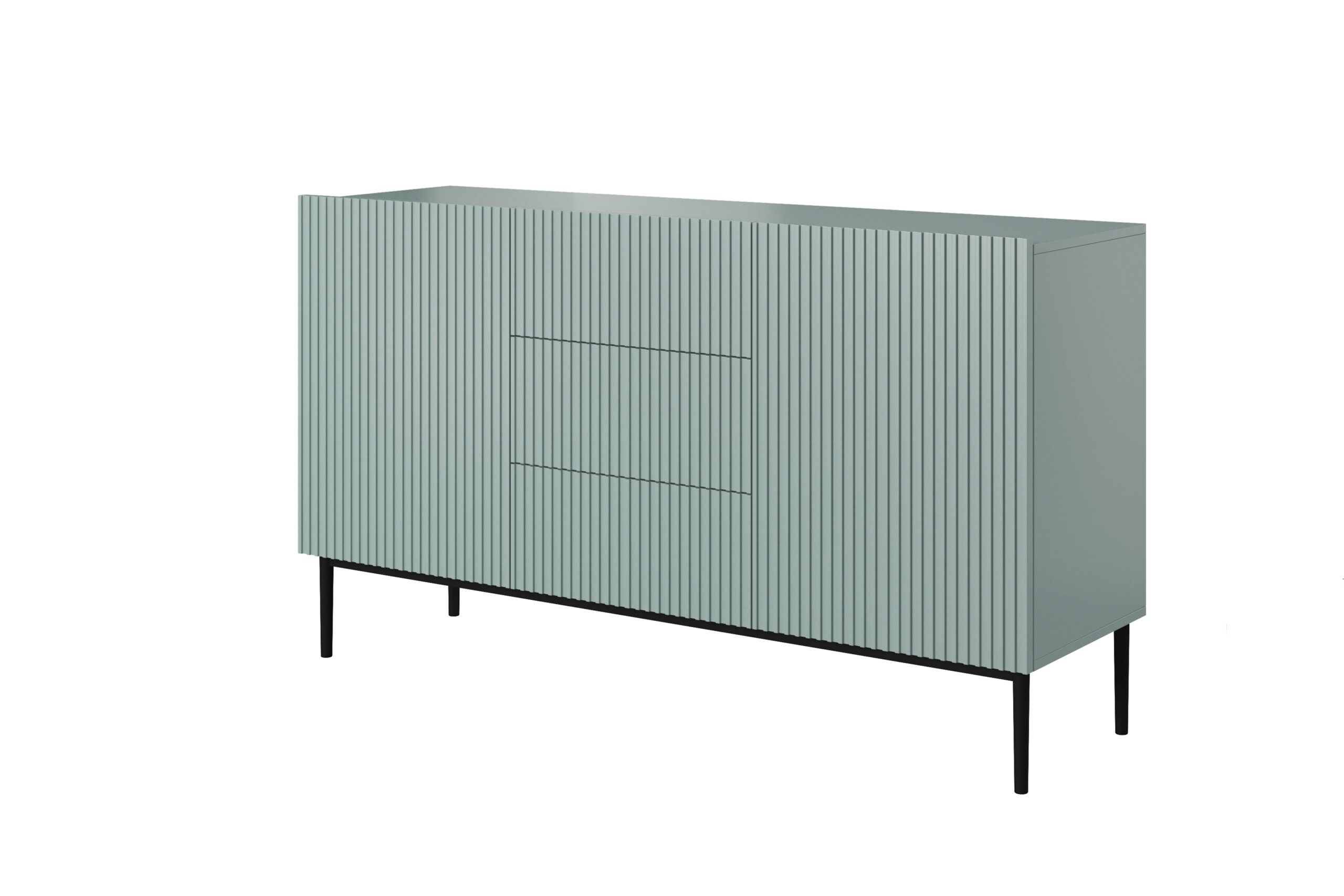 Nicole komód 150 cm, három fiókkal – zsálya MDF / fekete lábak
