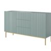 Nicole komód 150 cm, három fiókkal – zsálya MDF / aranyozott lábakkal, szélesség: 150, Magasság: 85, mélység: 45, Lábmagasság: 20.