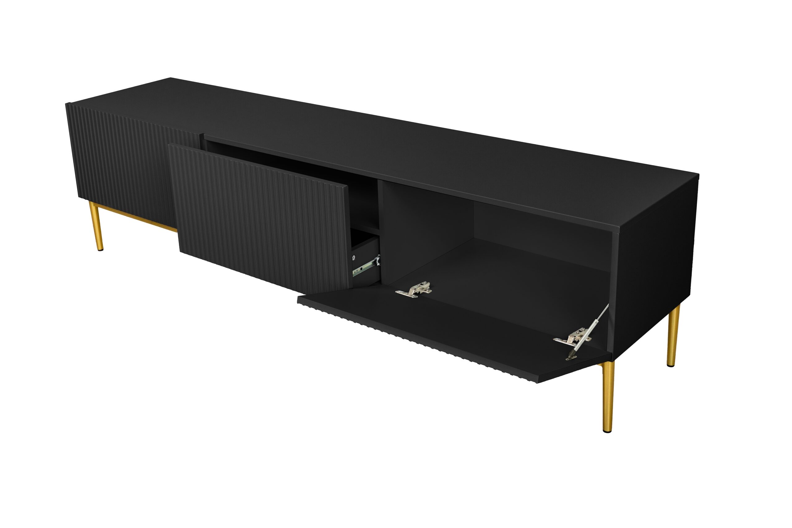 Nicole TV szekrény 200 cm – matt fekete / aranyozott lábak