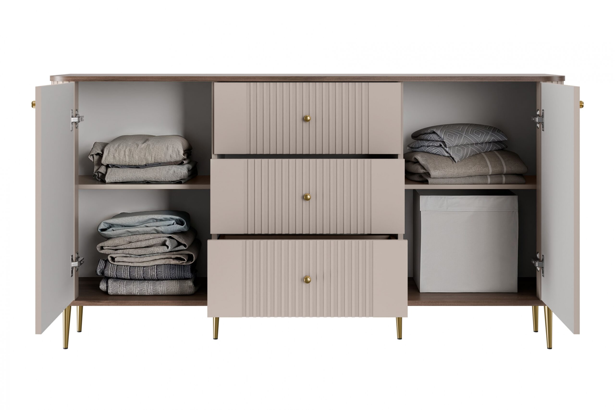Versper komód 160 cm – kasmír / dió / aranyozott Lábak