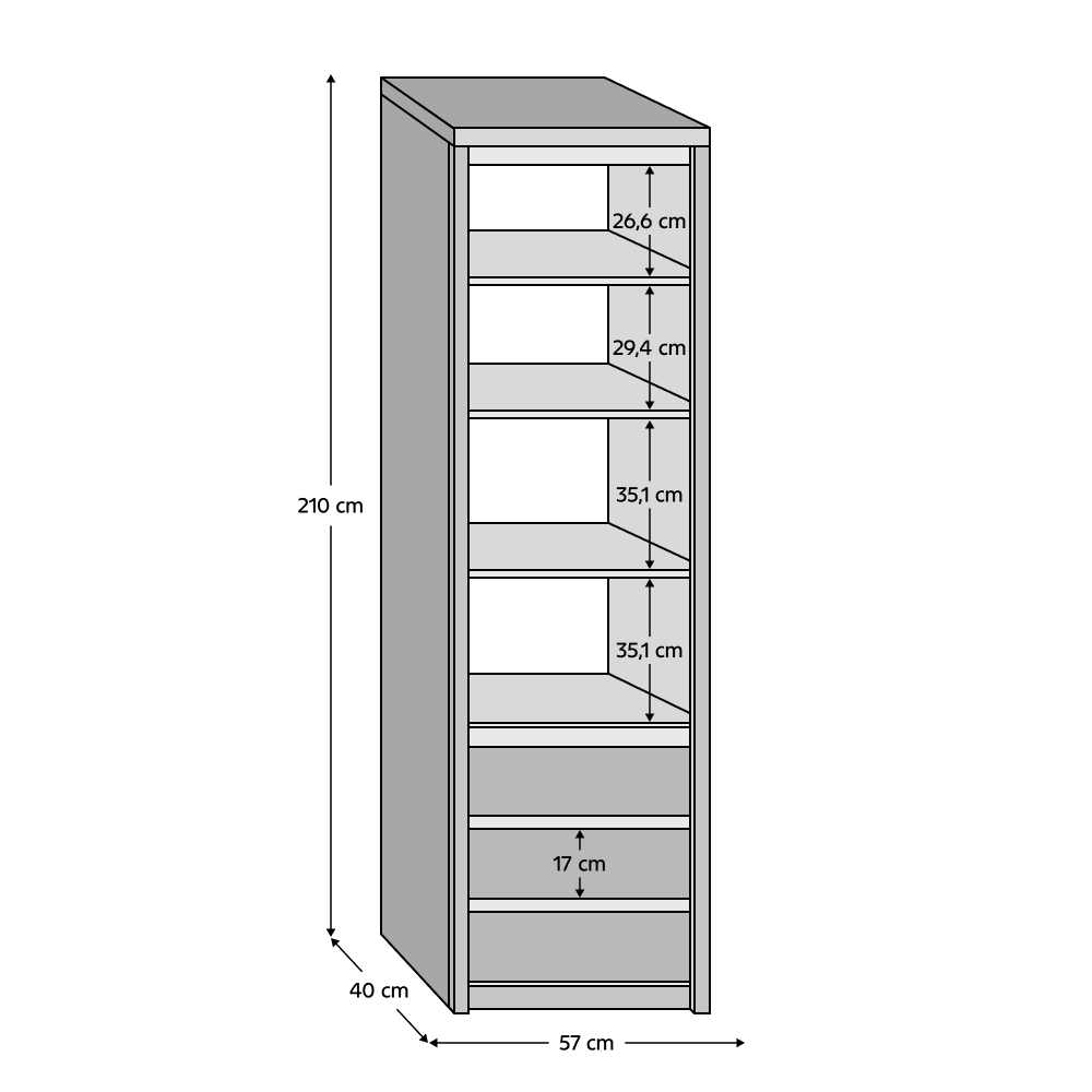 Méretek (SzéxMaxMé): 57x210x40 cm