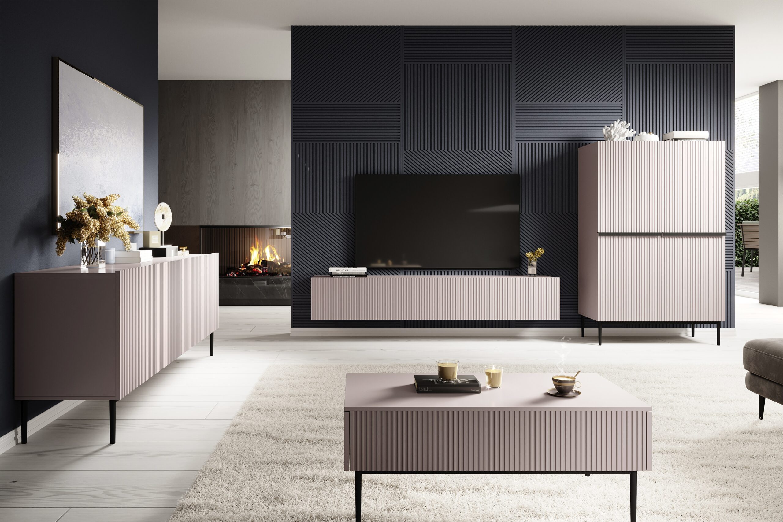 Nicole dohányzóasztal – antik rózsaszín MDF / fekete lábak