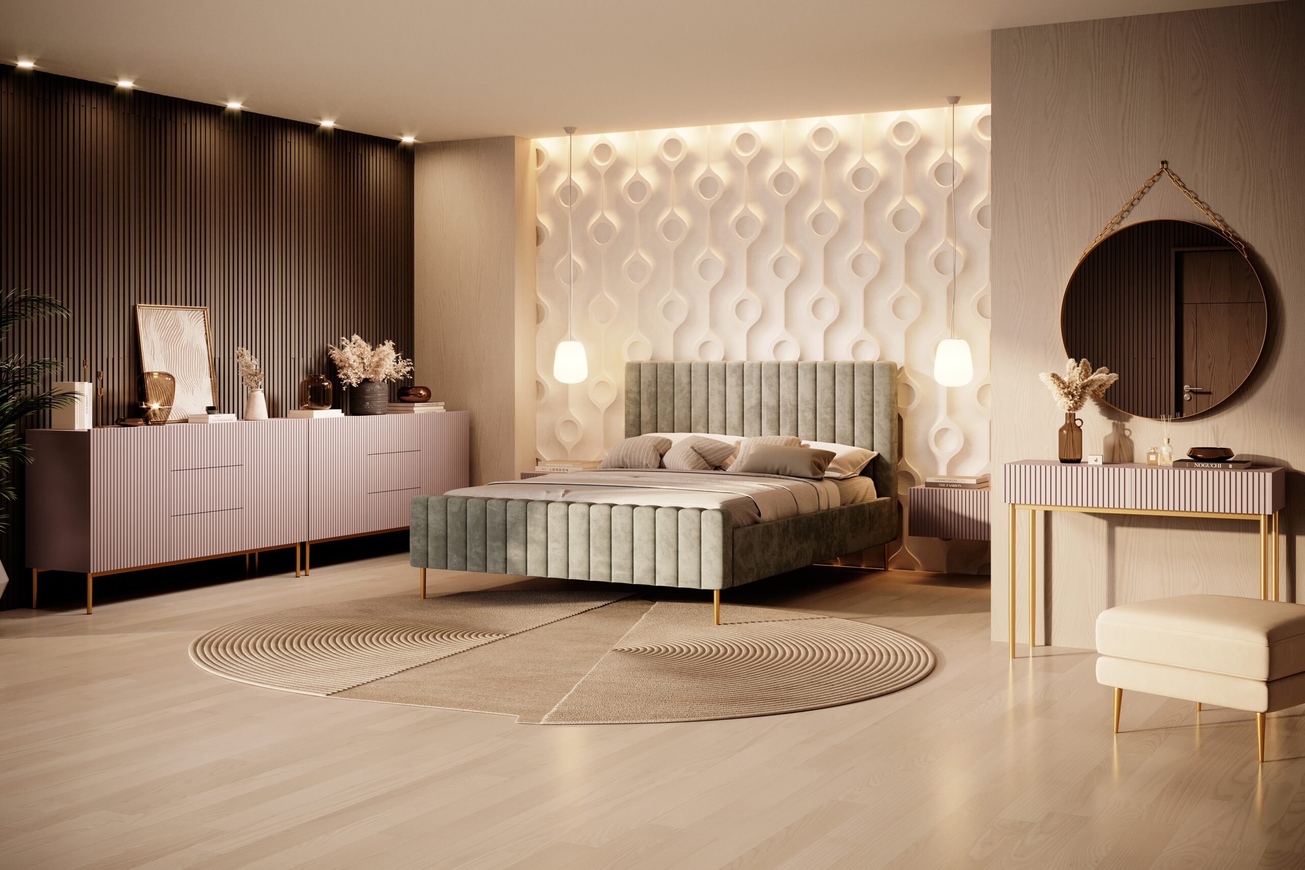 Nicole modern konzol / fésülködőasztal – antik rózsaszín MDF / aranyozott lábak