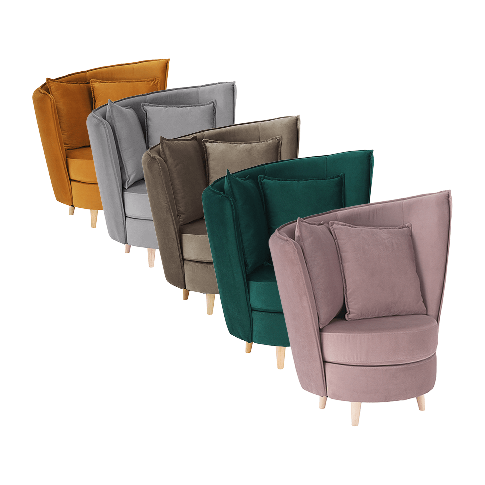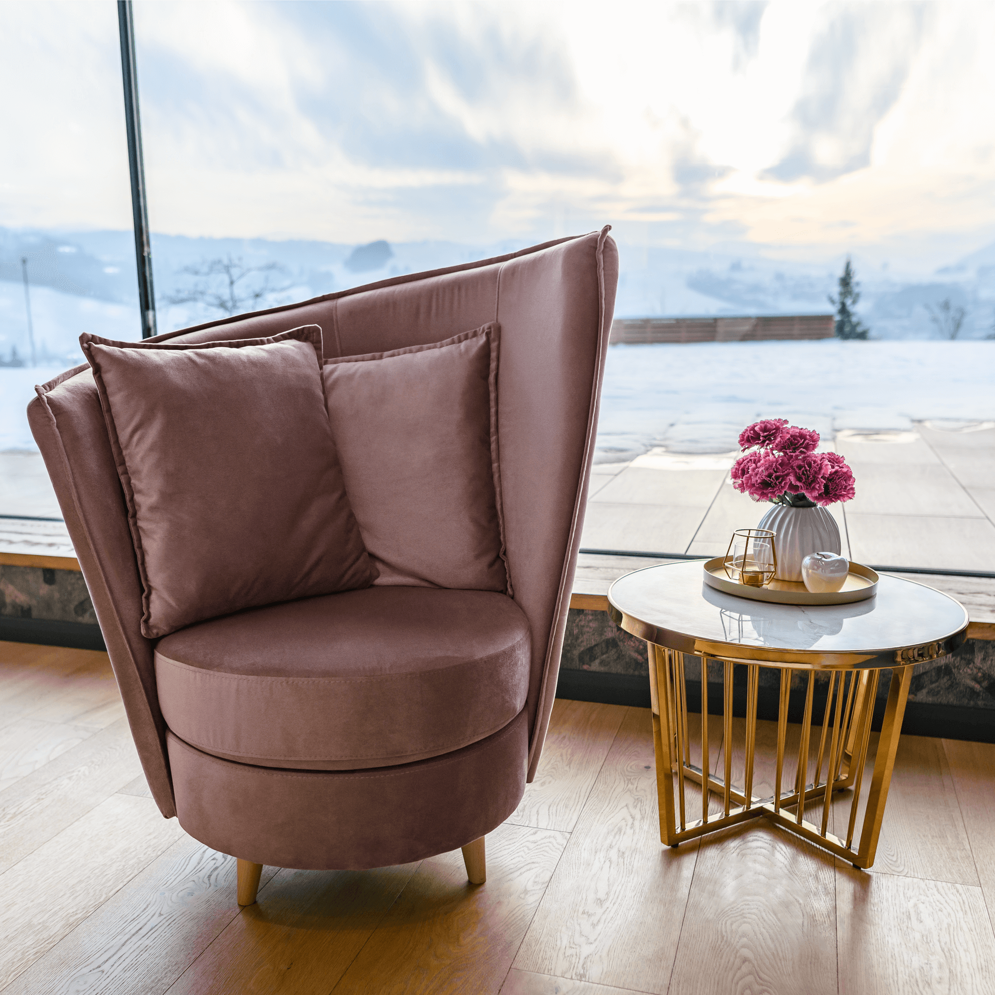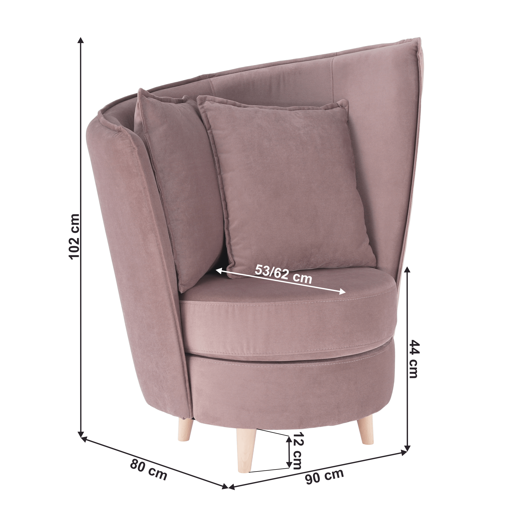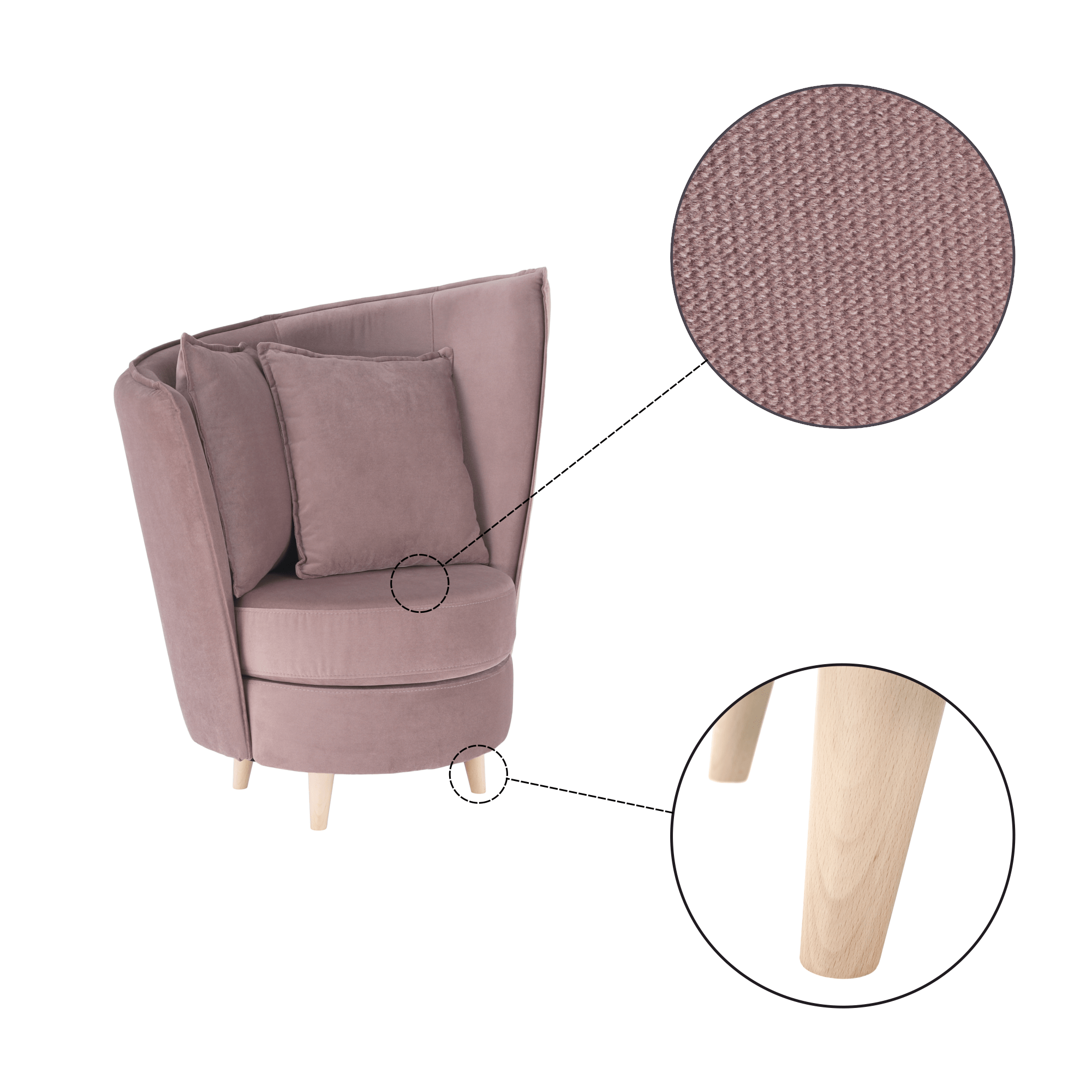 Fotel Art Deco stílusban, rózsaszín Kronos szövet/tölgy, ROUND NEW