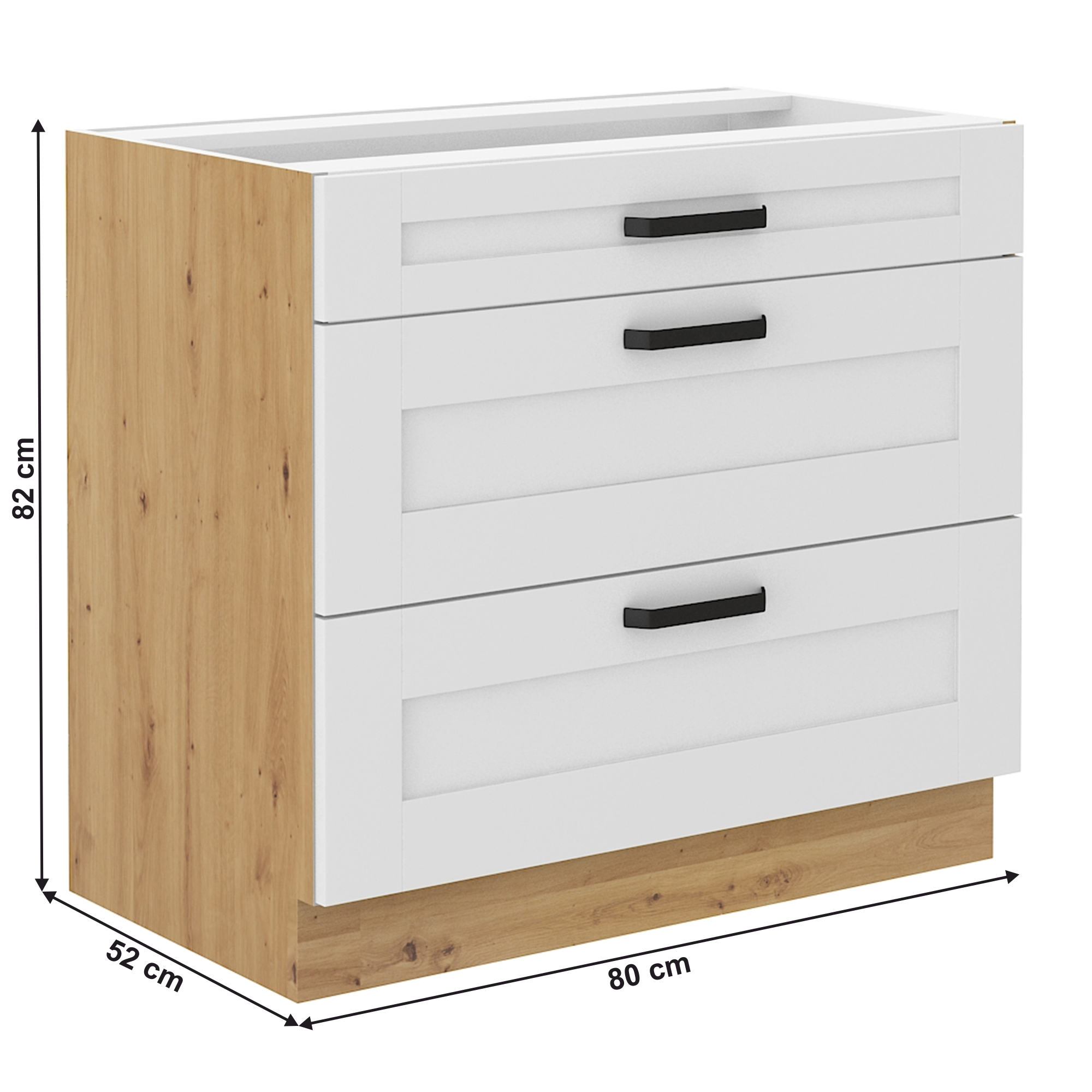 Alsó szekrény, fehér/artisan tölgy, LULA 80 D 3S BB