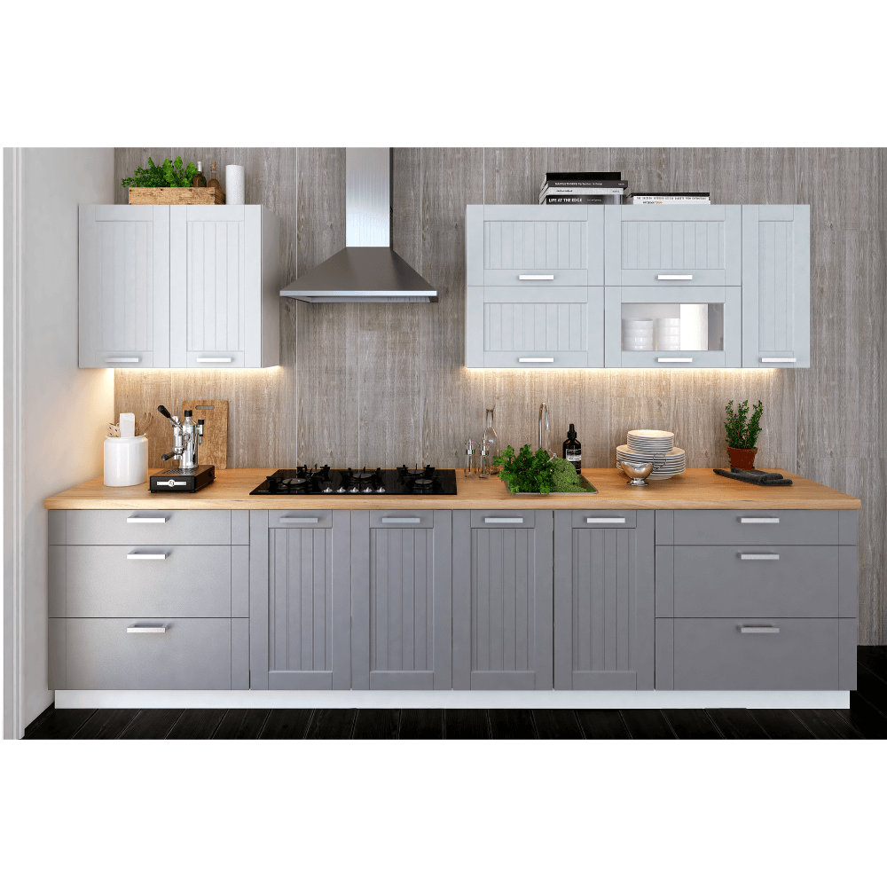 A szekrényeket alsó léccel, munkalap nélkül szállítjuk. A munkalap ára a 22 900 Ft/fm 38 mm vastag.