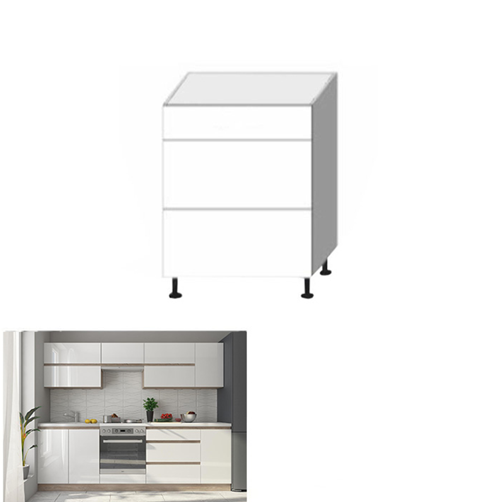 Alsószekrény három fiókkal D60, fehér magas fényű HG, LINE