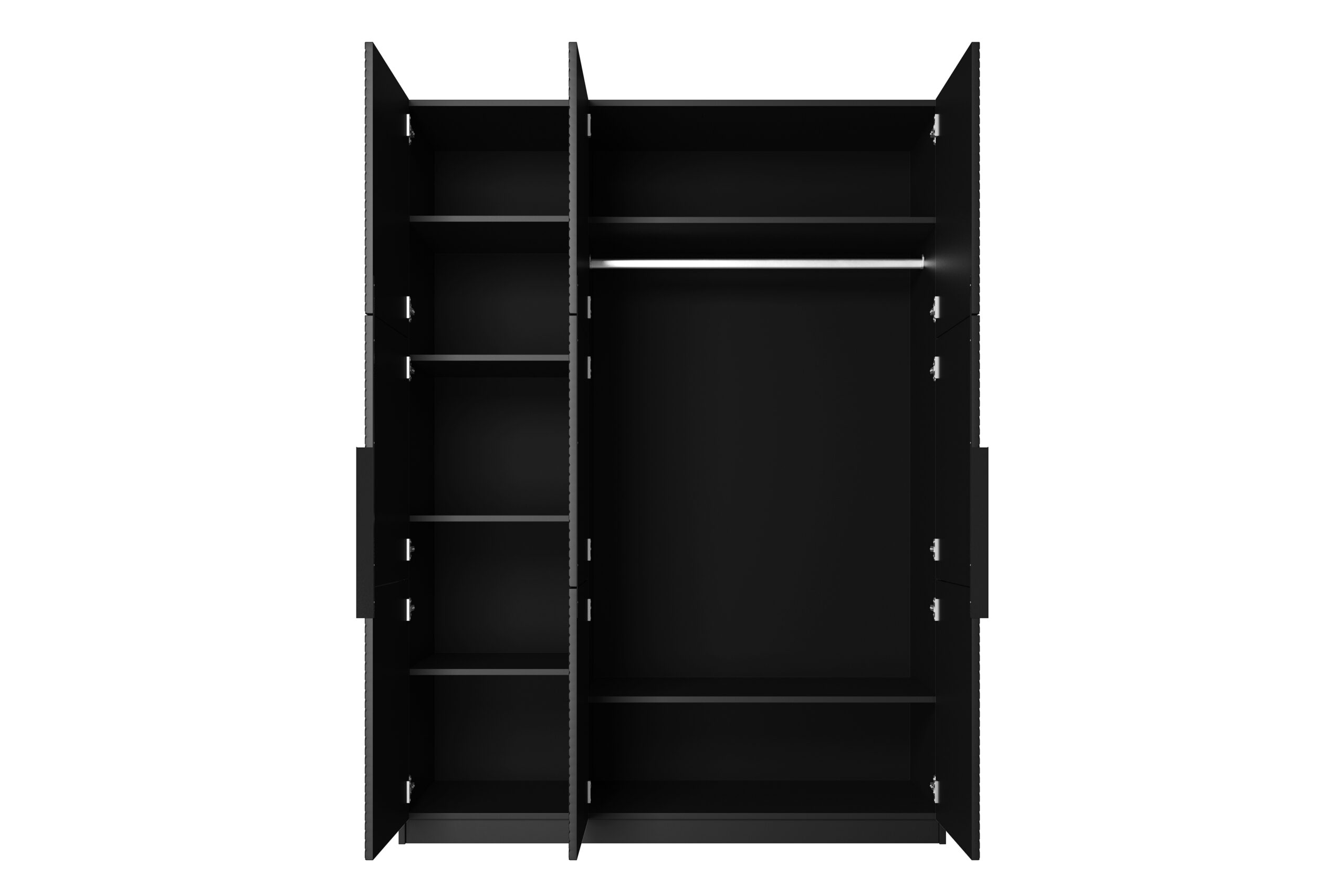 Asha gardrób 150 cm-es három ajtóval, fém kilincsekkel – matt fekete/fekete fogantyúkkal