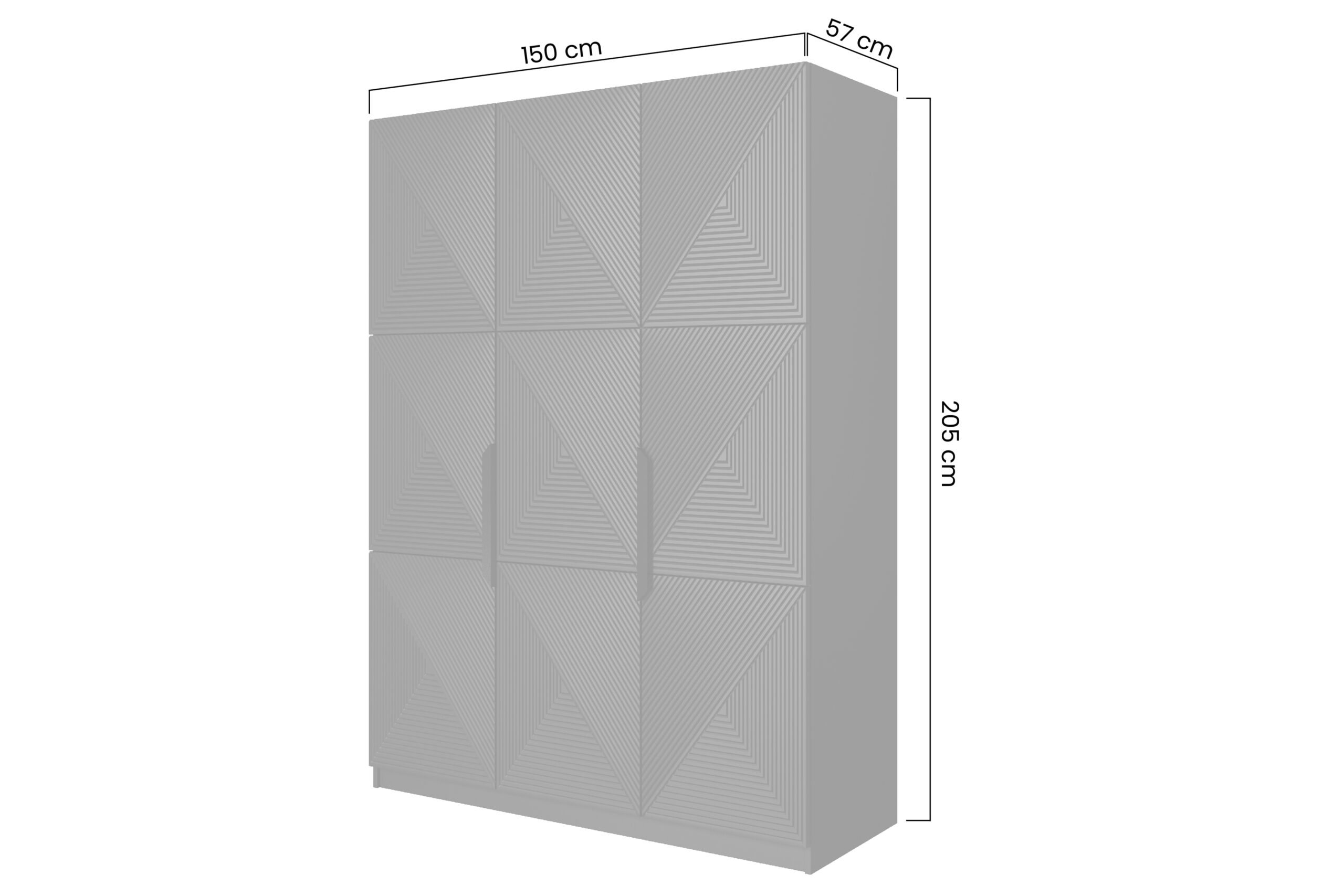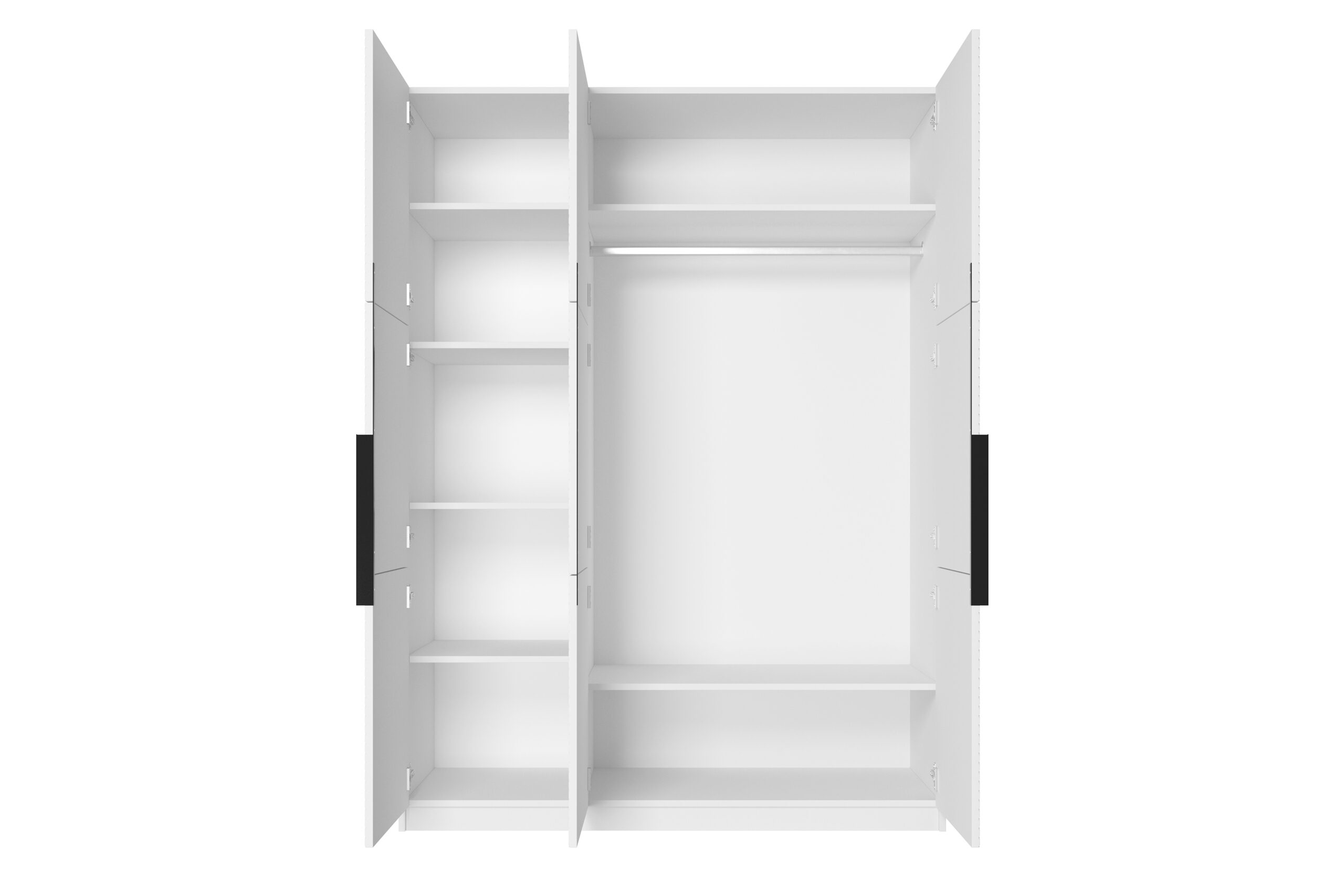 Asha szekrény 150 cm fém fogantyúkkal – matt fehér / fekete fogantyúk, szélesség: 150, Magasság: 205, mélység: 57, Összeszerelés: , Lábmagasság: , Asztallap mélysége: .