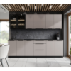 Az alsó szekrényeket az alsó sínnel együtt szállítjuk, asztallap nélkül.