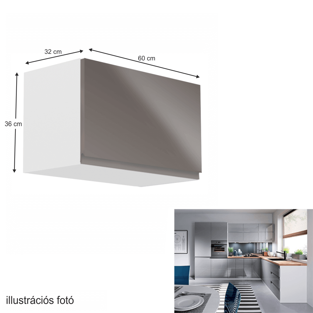 Felsőszekrény, fehér/szürke extra magasfényű, AURORA G60KN