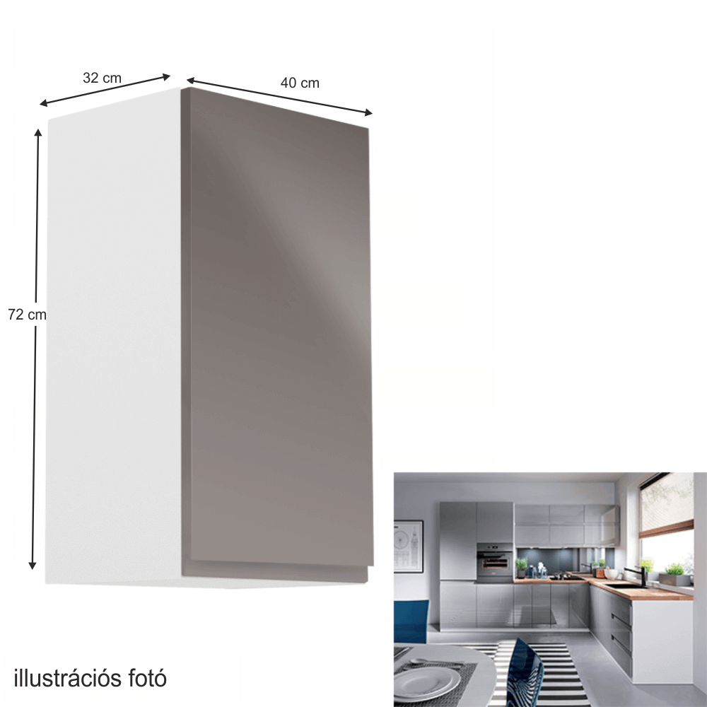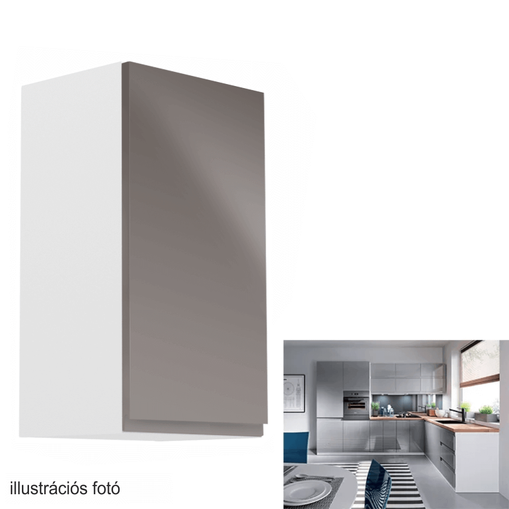 Felsőszekrény, fehér/szürke extra magasfényű, jobbos, AURORA G40