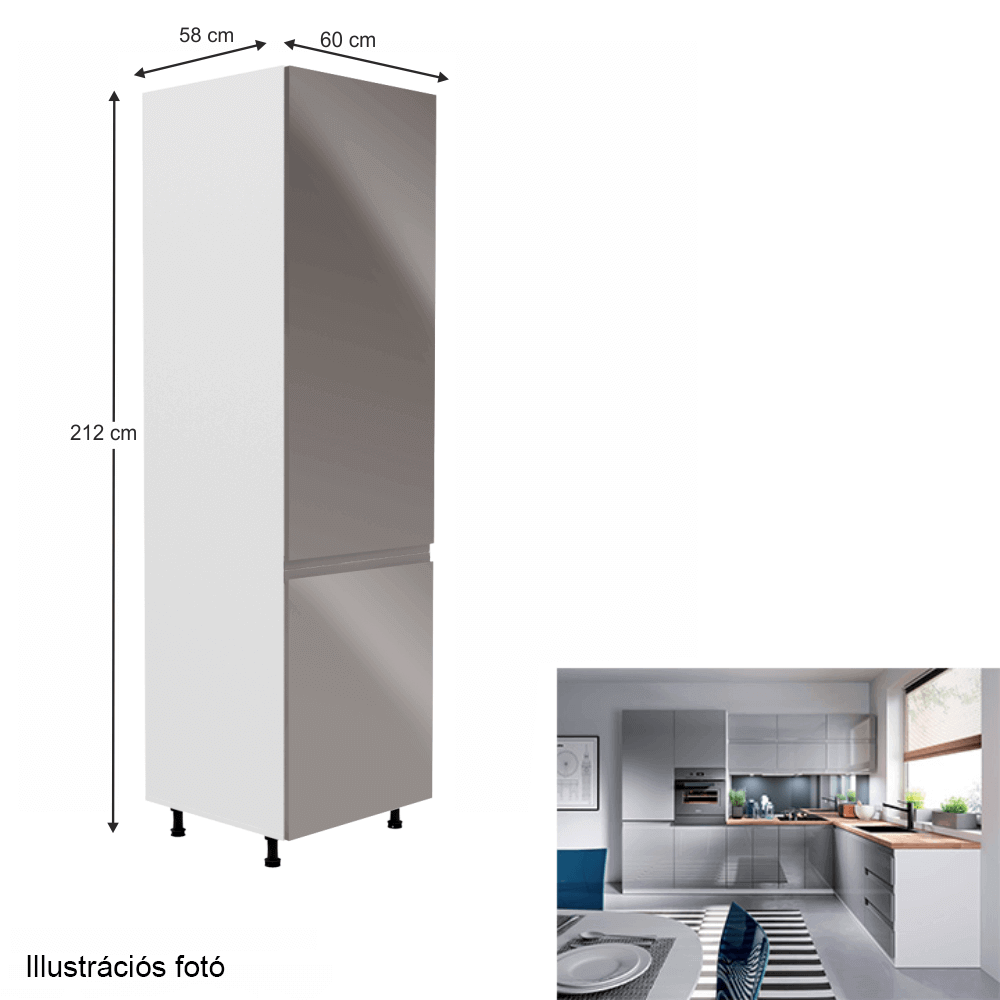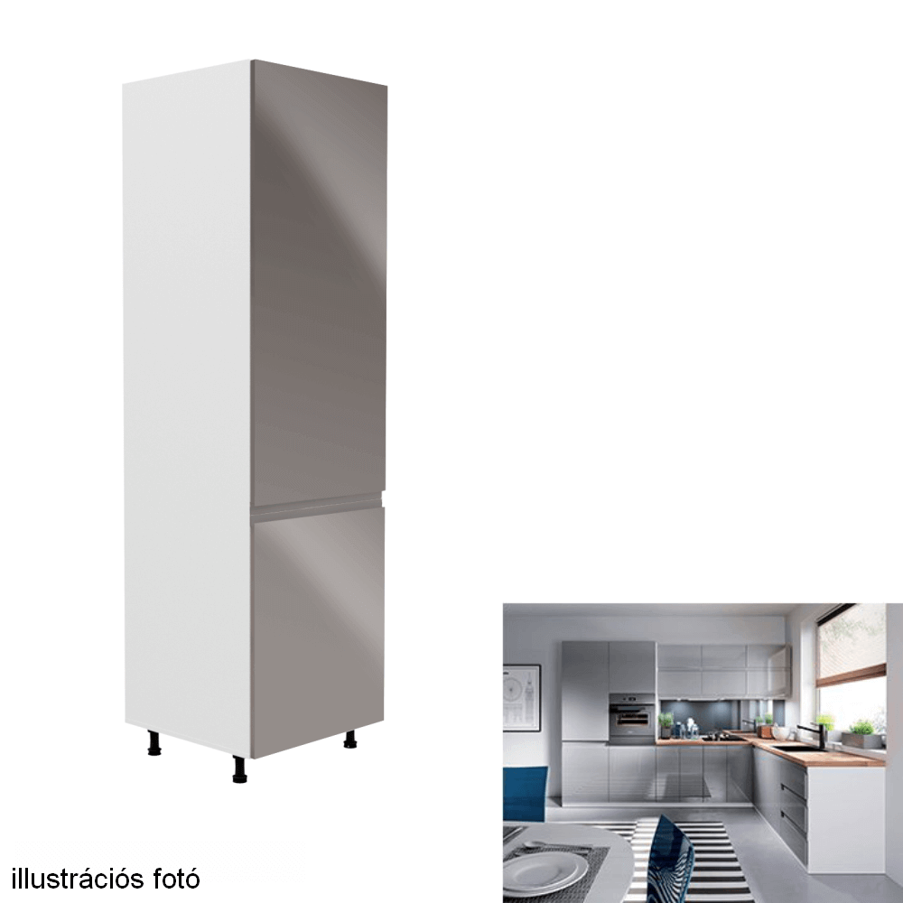 Szekrény a beépíthető hűtőhöz, fehér/szürke extra magasfényű, jobbos, AURORA D60ZL