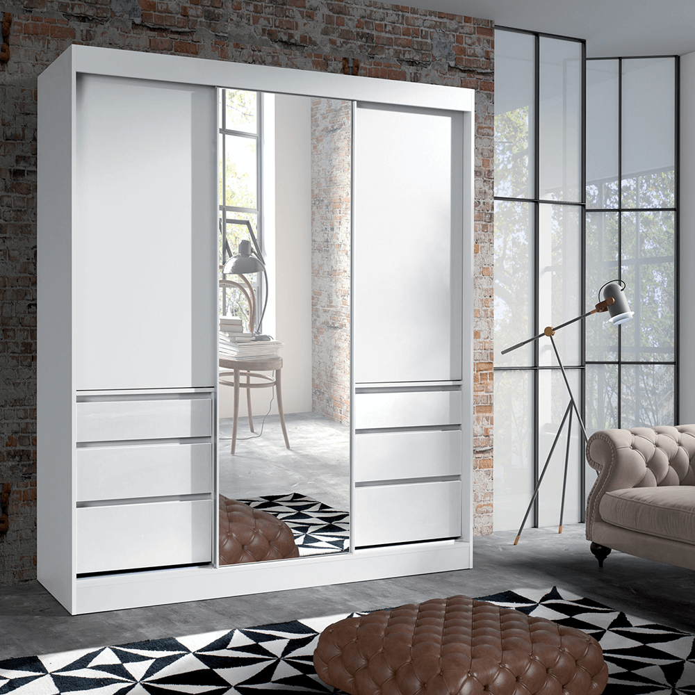 Szekrény tolóajtókkal, fehér, 180, ROMUALDA