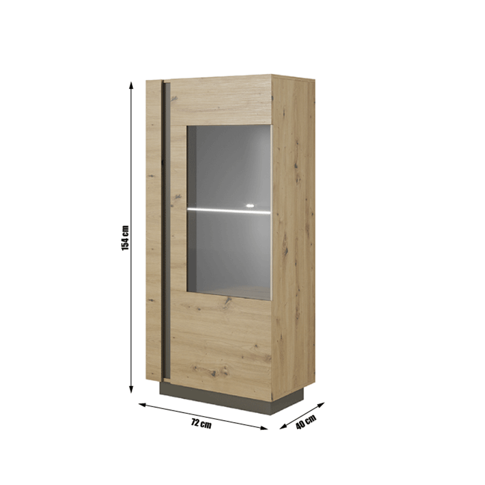 Vitrines szekrény 72, tölgy artisan/szürke grafit, CITY